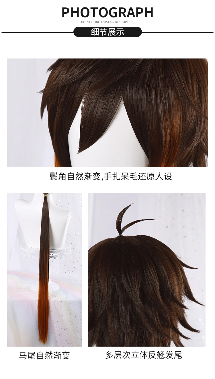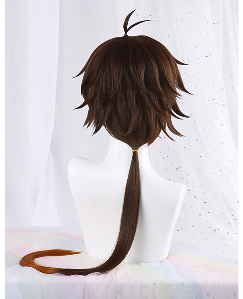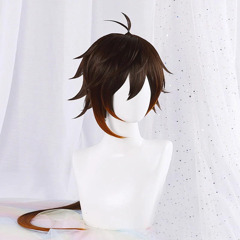 Парик Genshin Impact Zhongli для косплея, длиной 90 см, Рождественский коричнево-оранжевый парик, косплей, аниме, термостойкие волосы, парик и шапочка