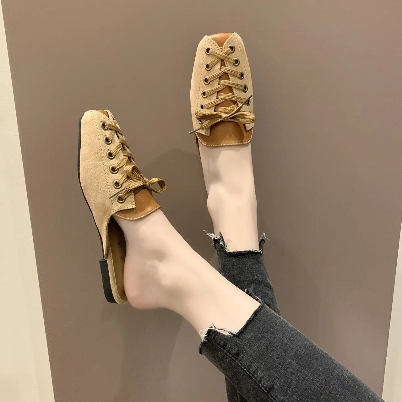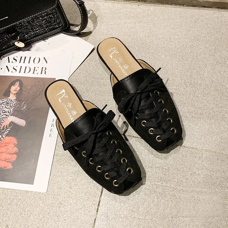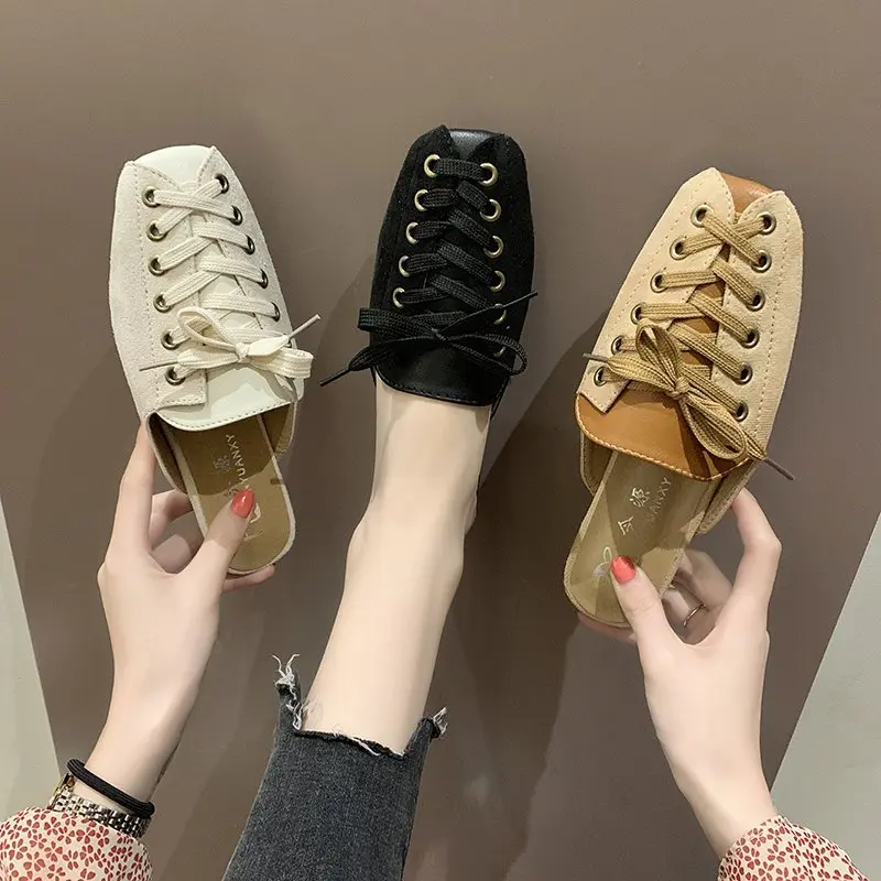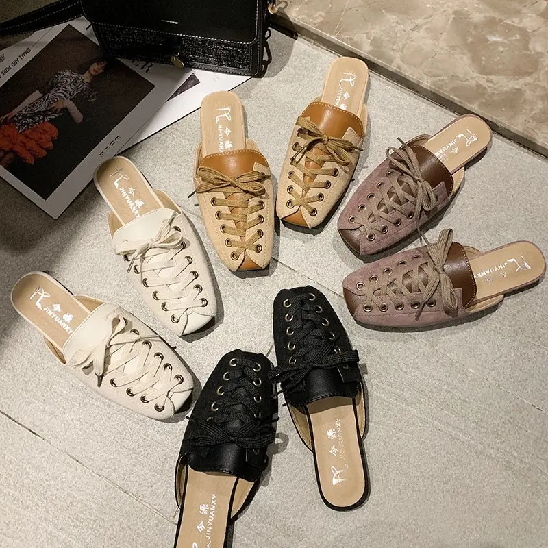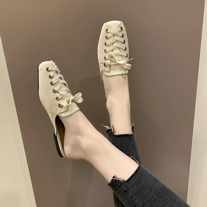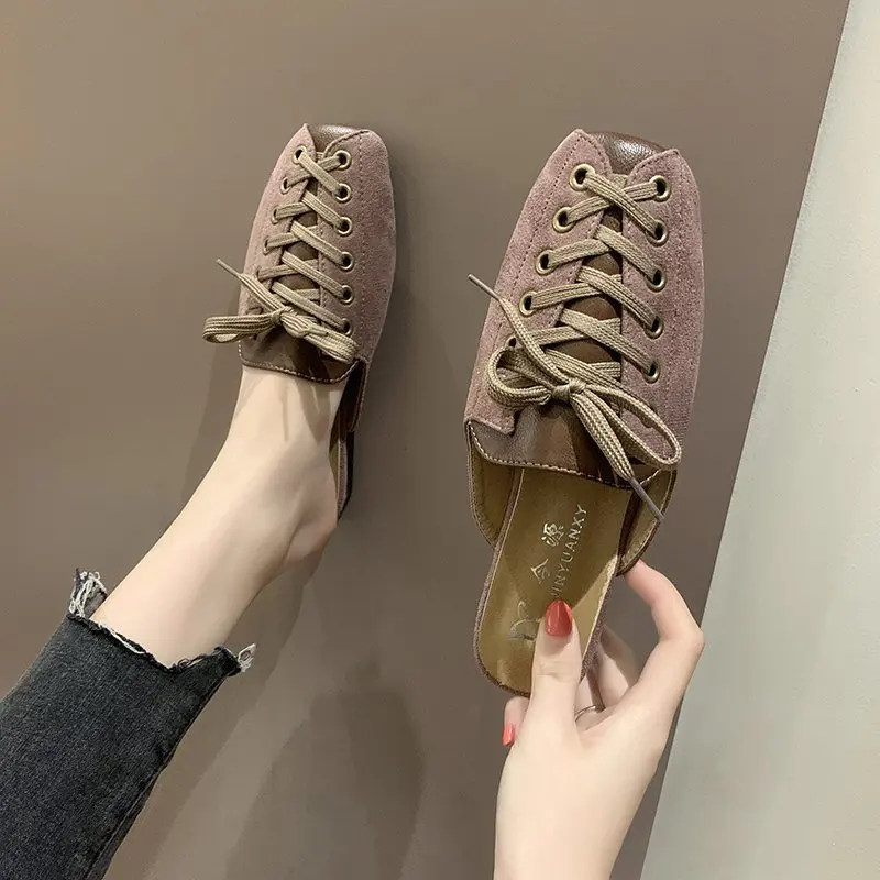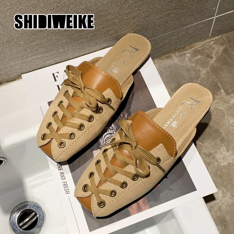2021 модные женские туфли с квадратным носком; Тапочки мюли дизайн со шнуровкой; Обувь на плоской подошве; Сандалии на высоком каблуке; Замшевые летние женские замшевые туфли vb152