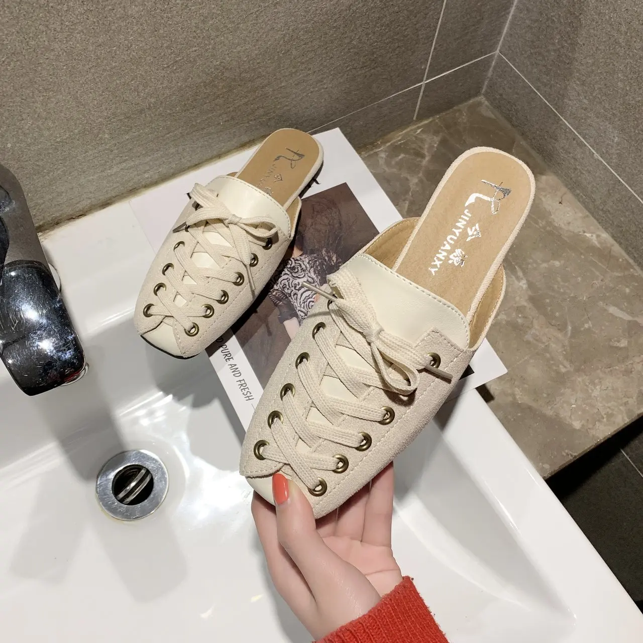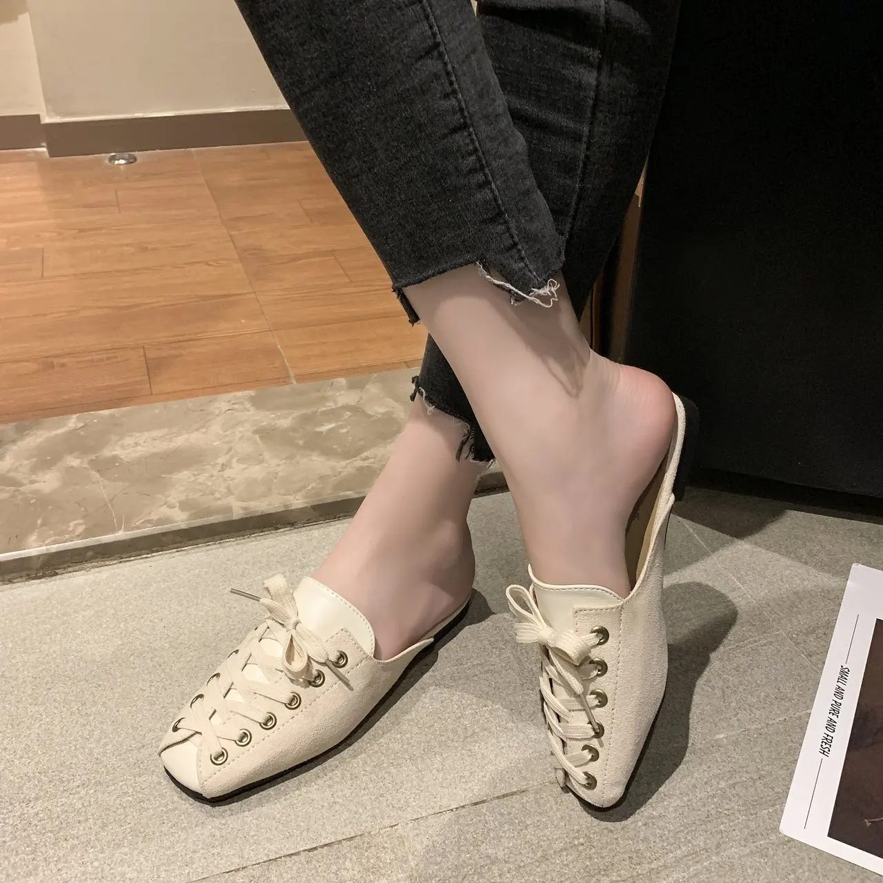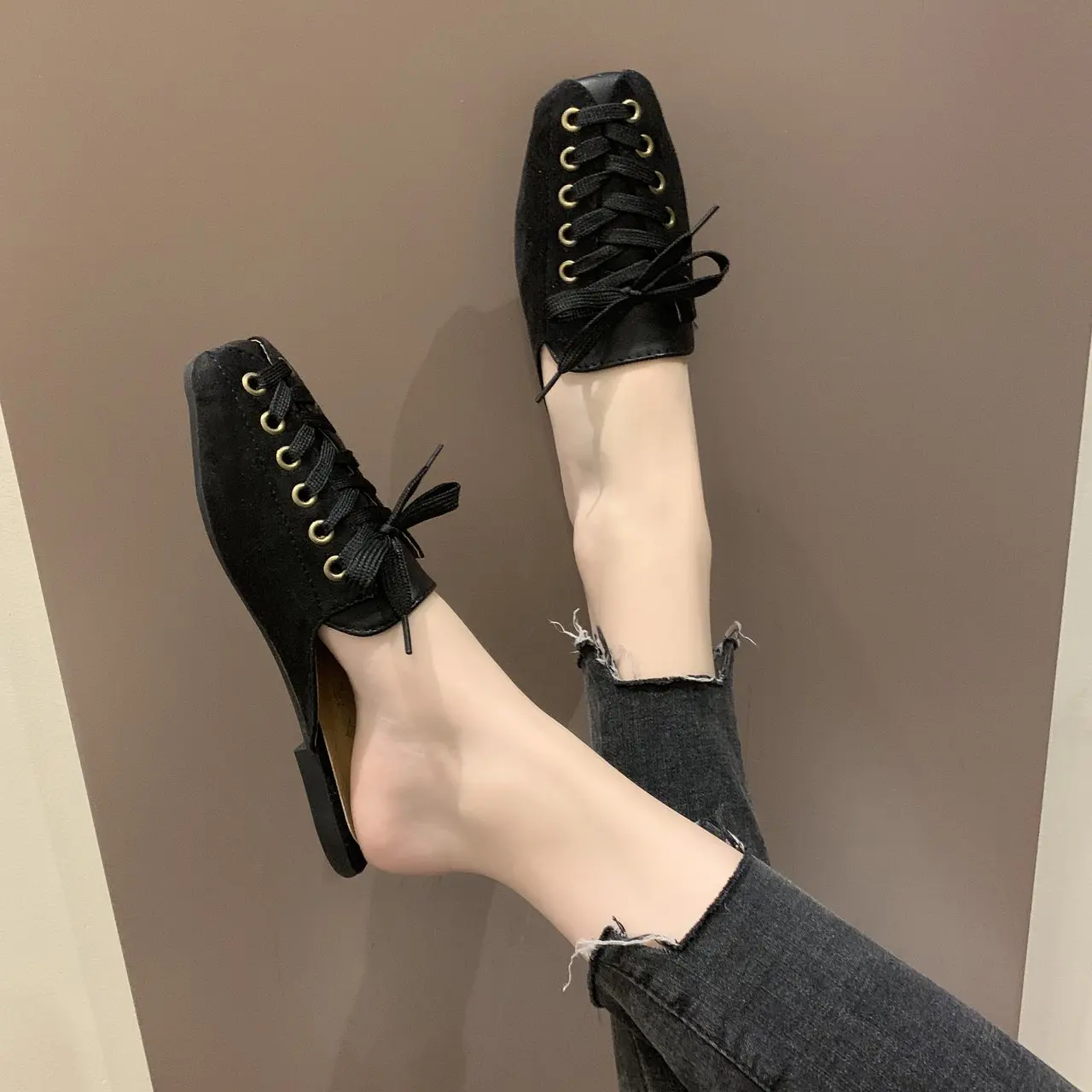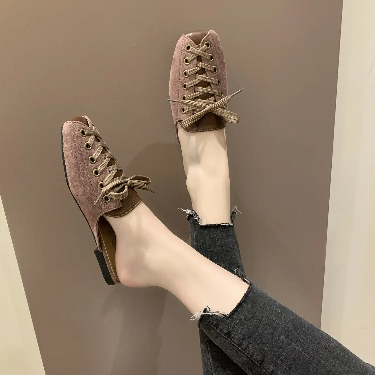 2021 модные женские туфли с квадратным носком; Тапочки мюли дизайн со шнуровкой; Обувь на плоской подошве; Сандалии на высоком каблуке; Замшевые летние женские замшевые туфли vb152