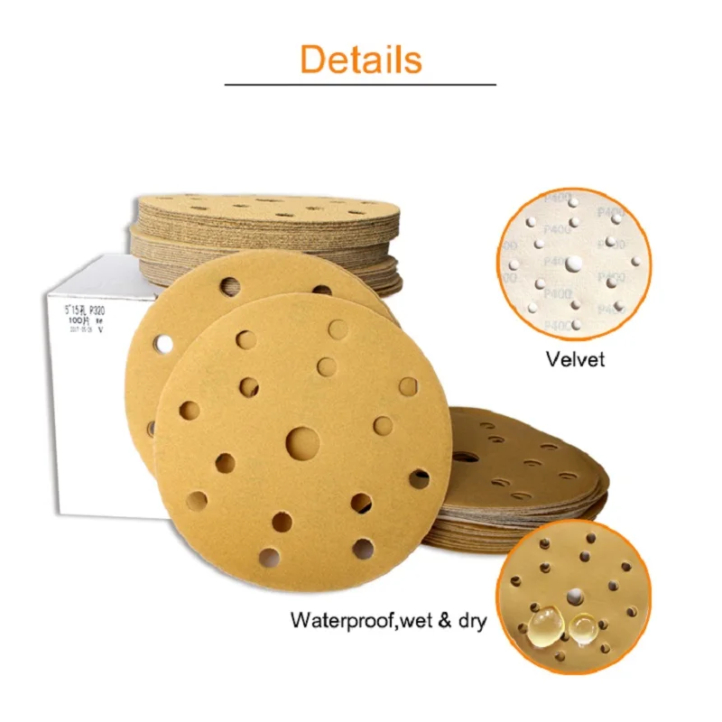 6 дюймов, 150 мм, 15 отверстий, 60-2000 Грит, крючок и петля из оксида алюминия, влажное и сухое искусственное колесо для автомобильной краски дерева