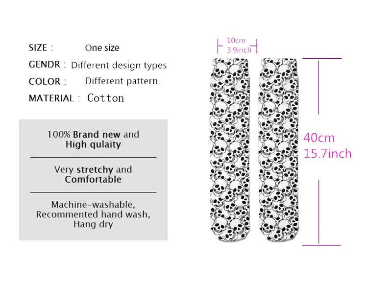 Носки мужскиеженские в стиле Харадзюку, хлопковые цветные, с забавными мультяшными носки с принтом черепа, спортивные баскетбольные носки, носки для вечерние, подарок