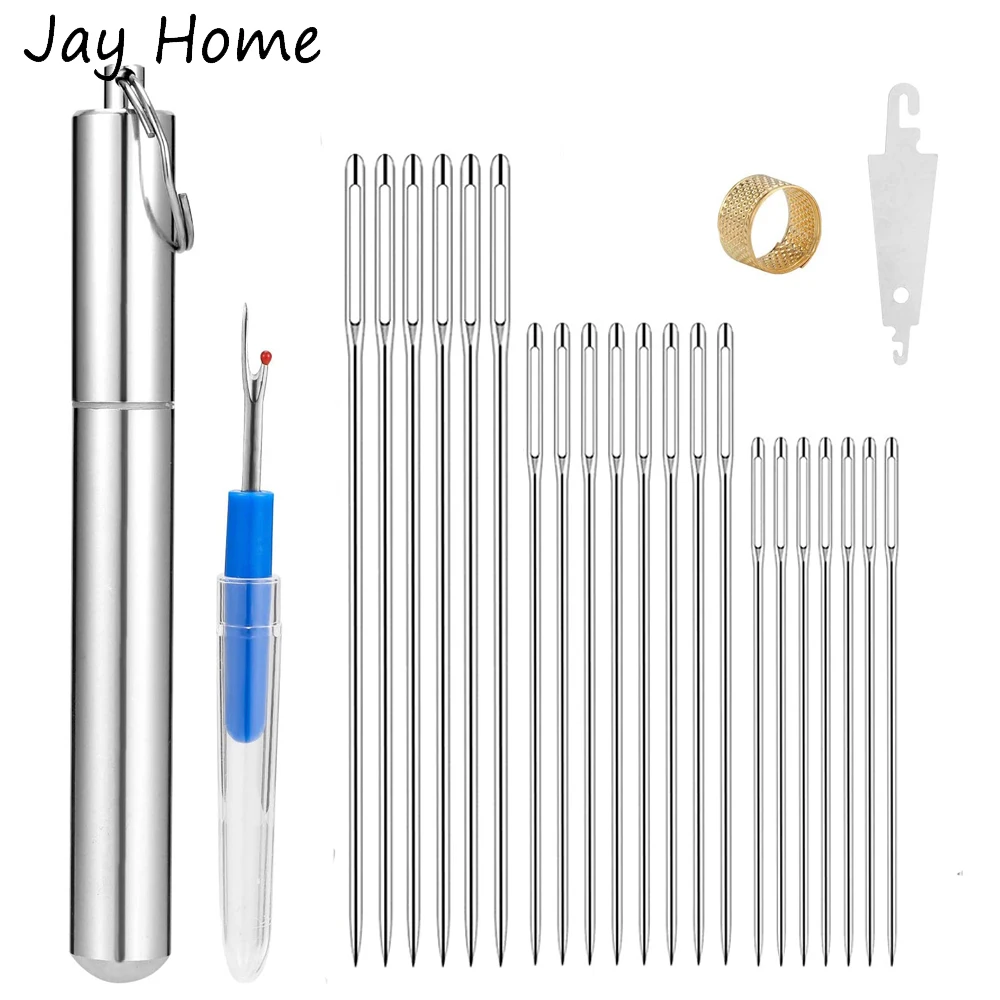20 шт., набор швейных игл, большая игла для вышивки глаз с иглой, наперсток и трубка для хранения вязальных ремесел