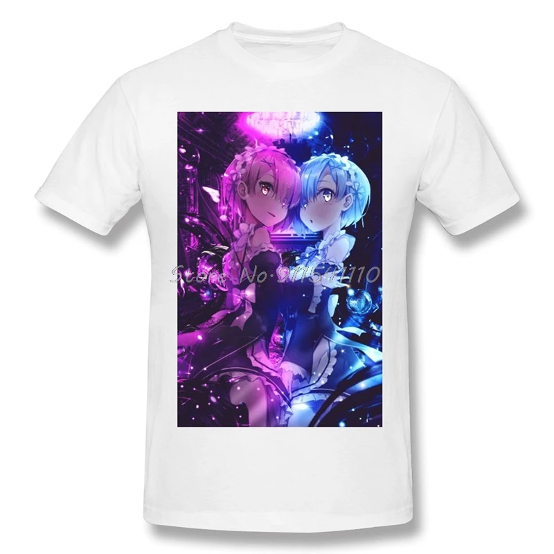 Rem и Ram верхняя одежда негабаритных дизайн Re zero Субару Нацуки Аниме Мужская футболка из хлопка