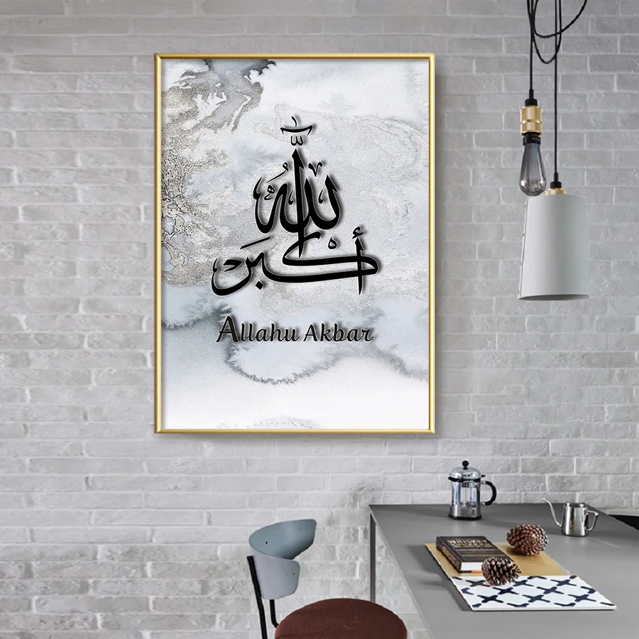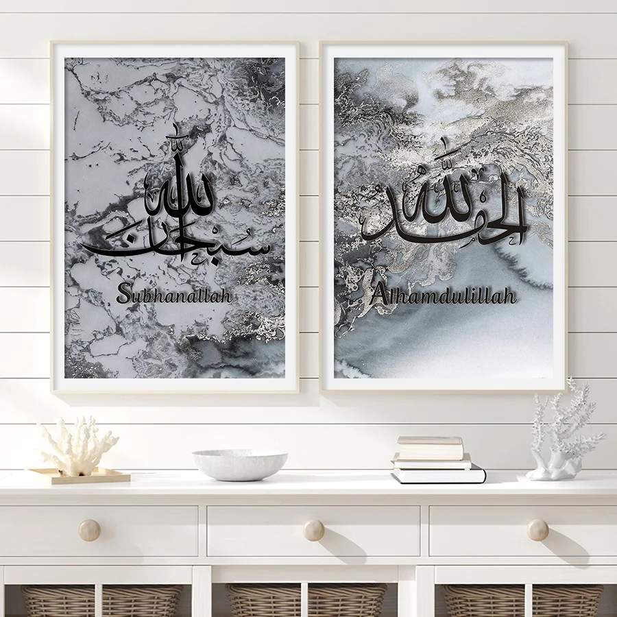 Арабская каллиграфия живопись мусульманские настенные художественные плакаты и принты абстрактная Серая Мраморная Картина на холсте современное домашнее исламское украшение