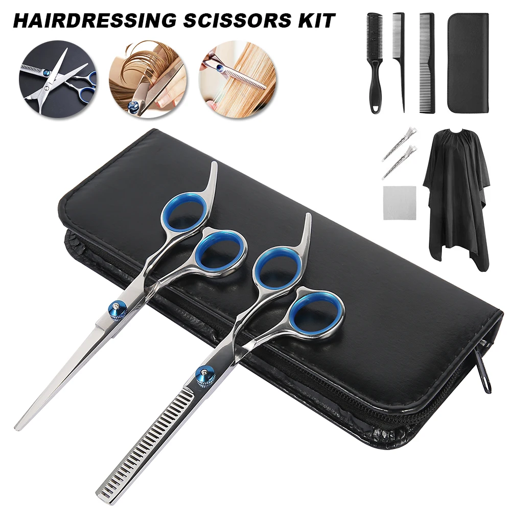 Парикмахерские ножницы 9 шт.компл., профессиональный набор для стрижки волос, Парикмахерская, Филировочная расческа, аксессуары для укладки волос