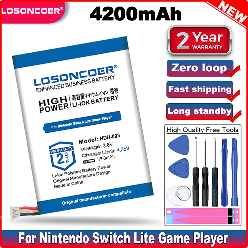 Запасной аккумулятор LOSONCOER 4200 мАч HDH-003, ремонт для игрового плеера Nintendo Switch Lite, литий-ионные аккумуляторные батареи