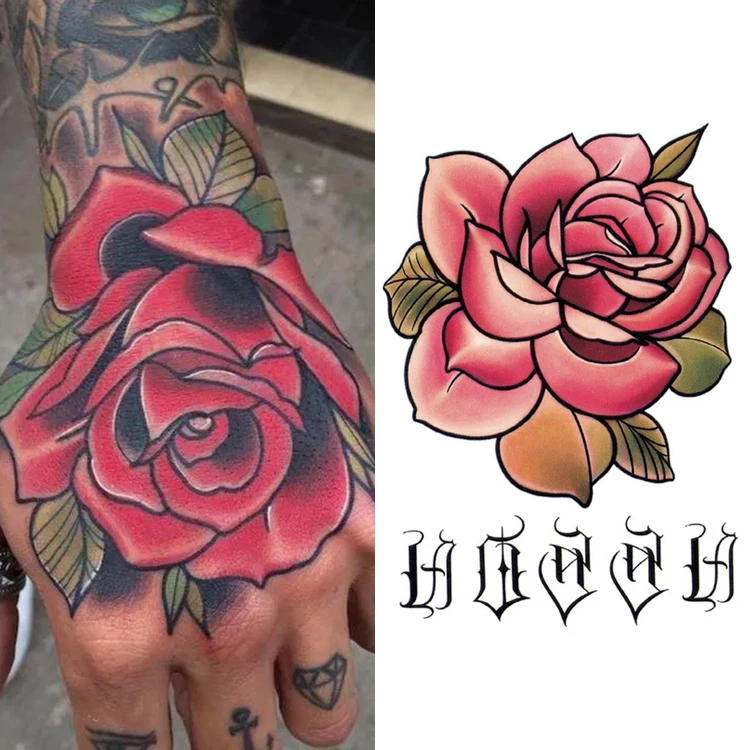 Водостойкая временная татуировка-наклейка цветок Роза флэш-тату рук...