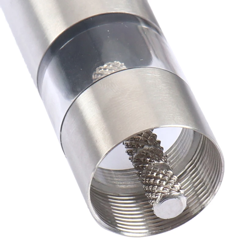 Характеристики:Материал изделия: нержавеющая сталь 201, акрил.Полка: нержавеющая сталь 304.Область применения: черный перец, белый перец, морская соль и другие твердые частицы
