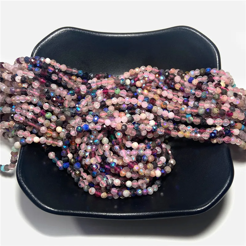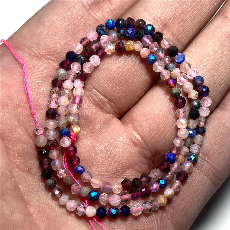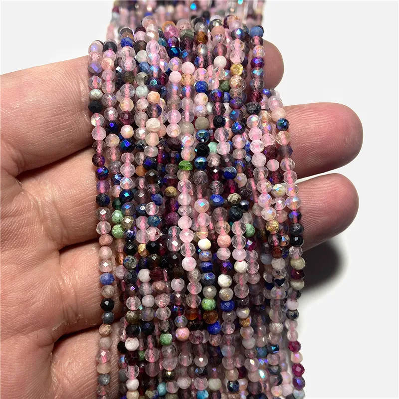 Натуральный розовый AB Турмалин граненые 2 3 4 мм Камень Бисер Круглый Quartzs Кристалл бусины для самостоятельного изготовления ювелирных украшений расходные материалы для изготовления 38 см