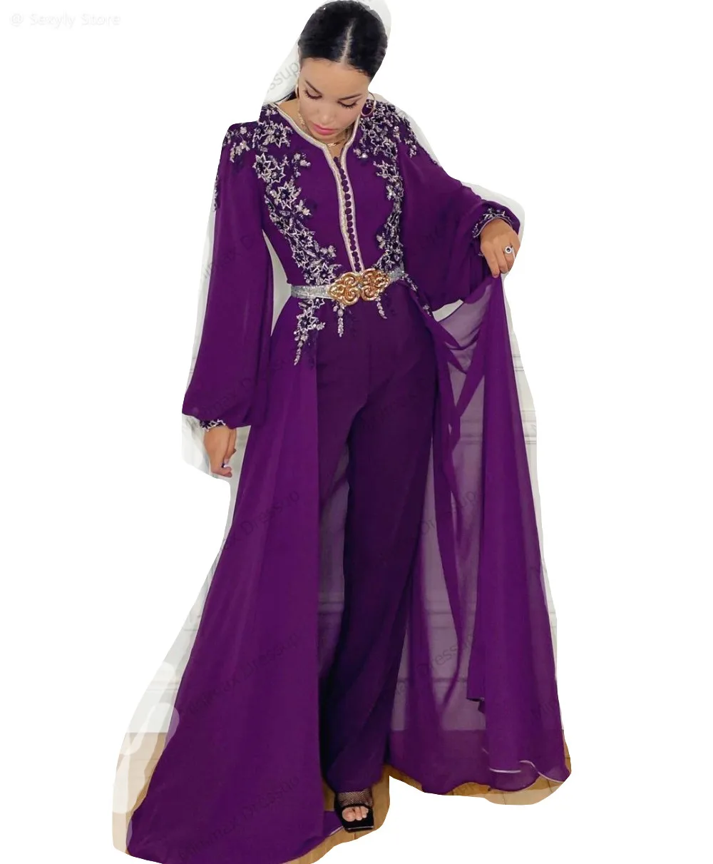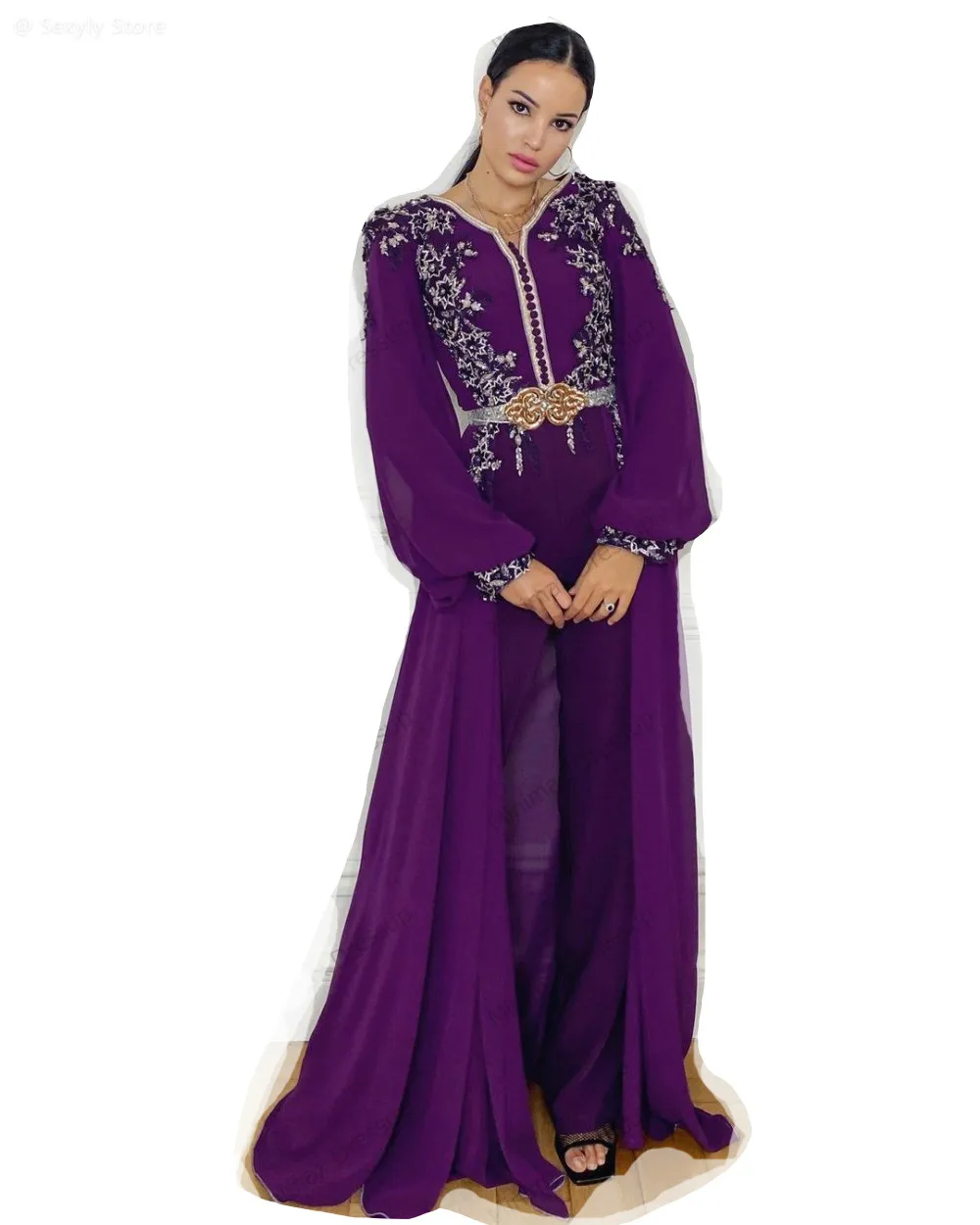 Женское вечернее платье с длинным рукавом, элегантное фиолетовое платье Дубая с кружевом из бисера, кафтан с марокканскими арабскими цифрами, мусульманское платье, 2021