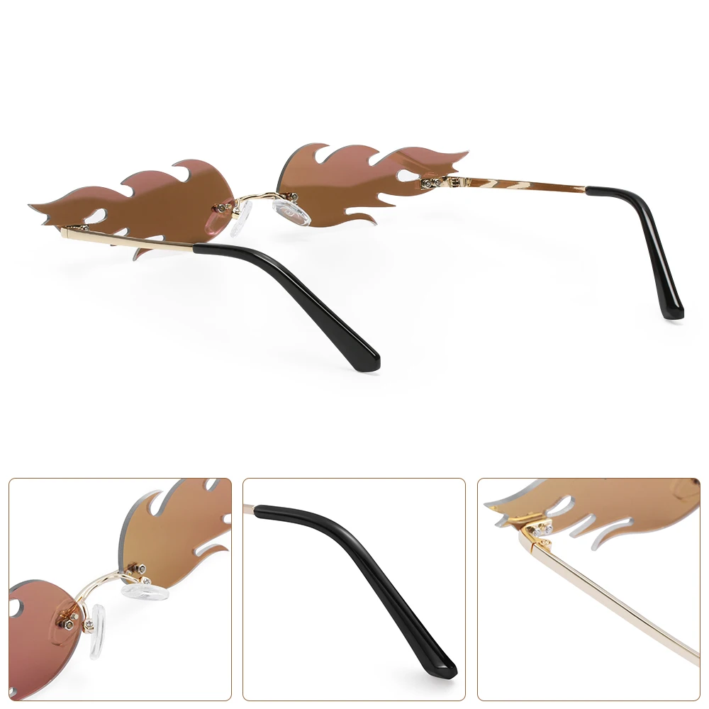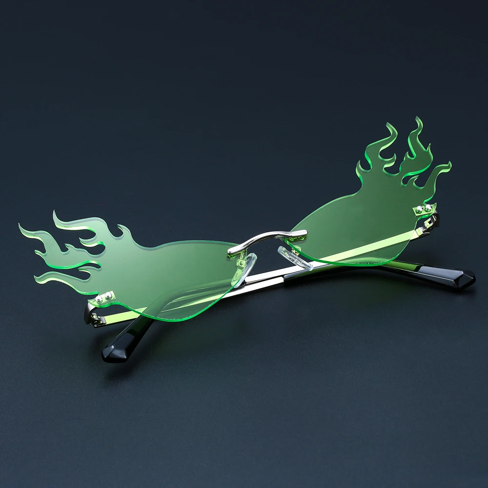 Солнцезащитные очки без оправы для мужчин и женщин, солнечные аксессуары в форме огненного пламени, с УФ-защитой, 400