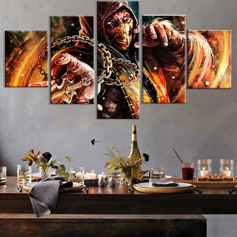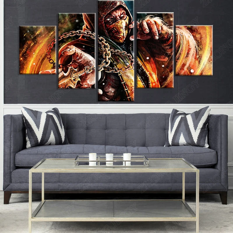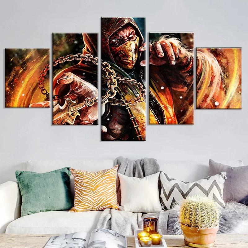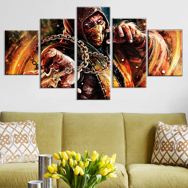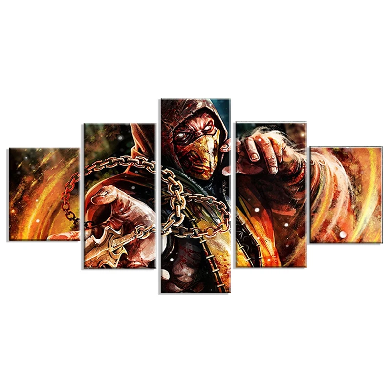 Произведения Искусства Стены Модульная повесить картину высокой четкости изображения 5 шт. Mortal kombat с принтом из игры дома постер холст ночной фон Настенный декор