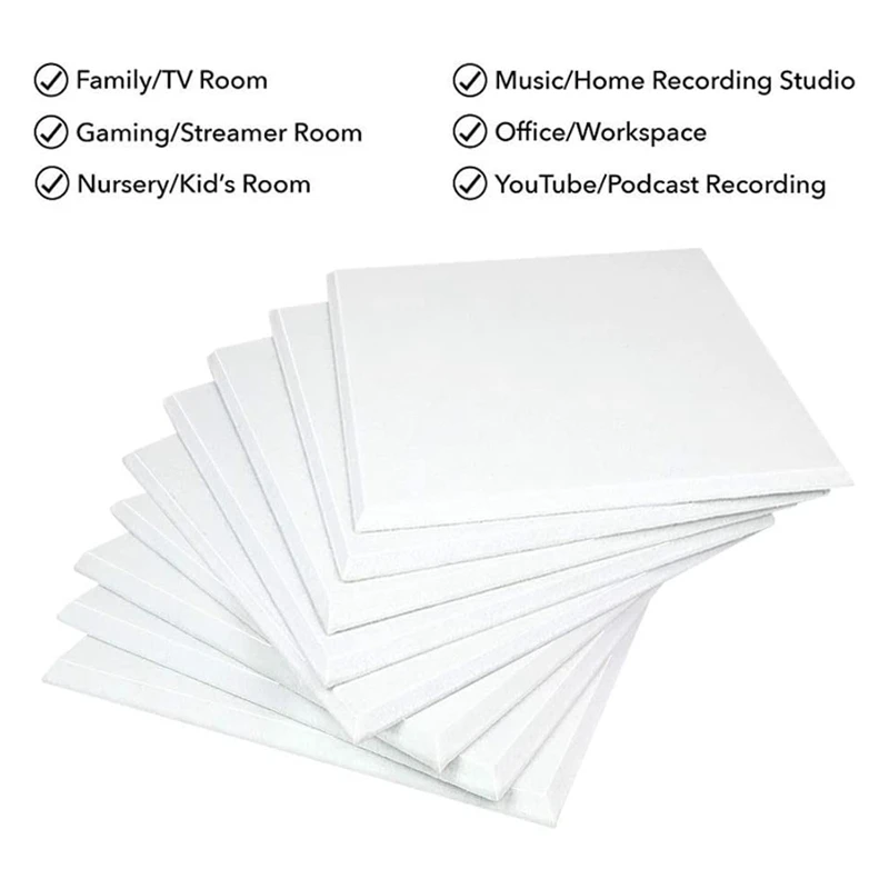 Акустические панели белые 12 штук высокой плотности скошенные края для украшения стен и акустической обработки