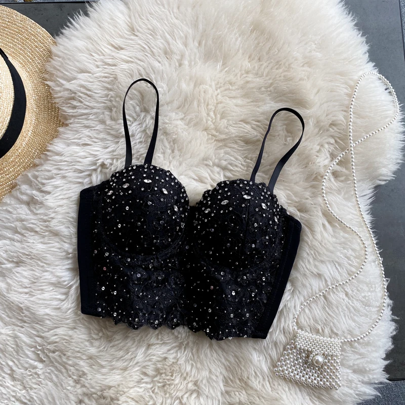 Женский жилет с бусинами, бюстье без рукавов, Короткие топы для веч...