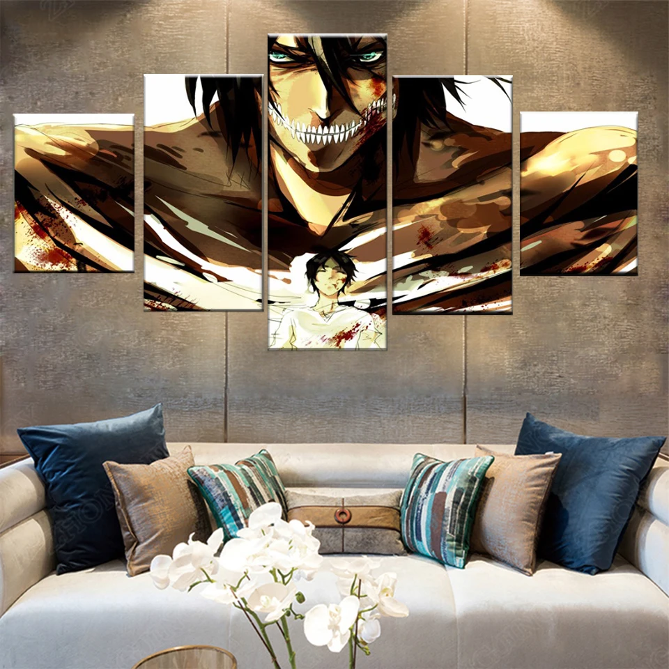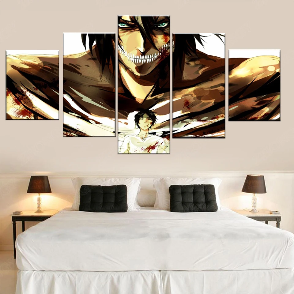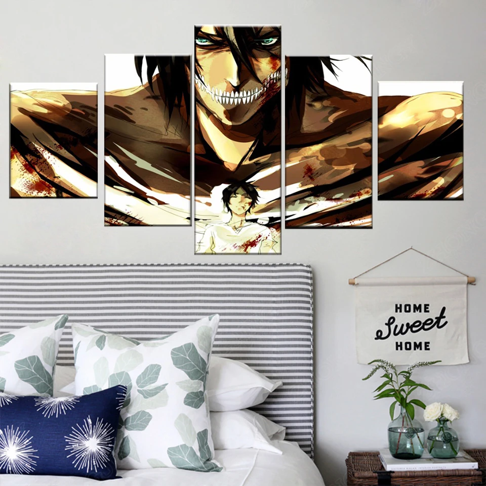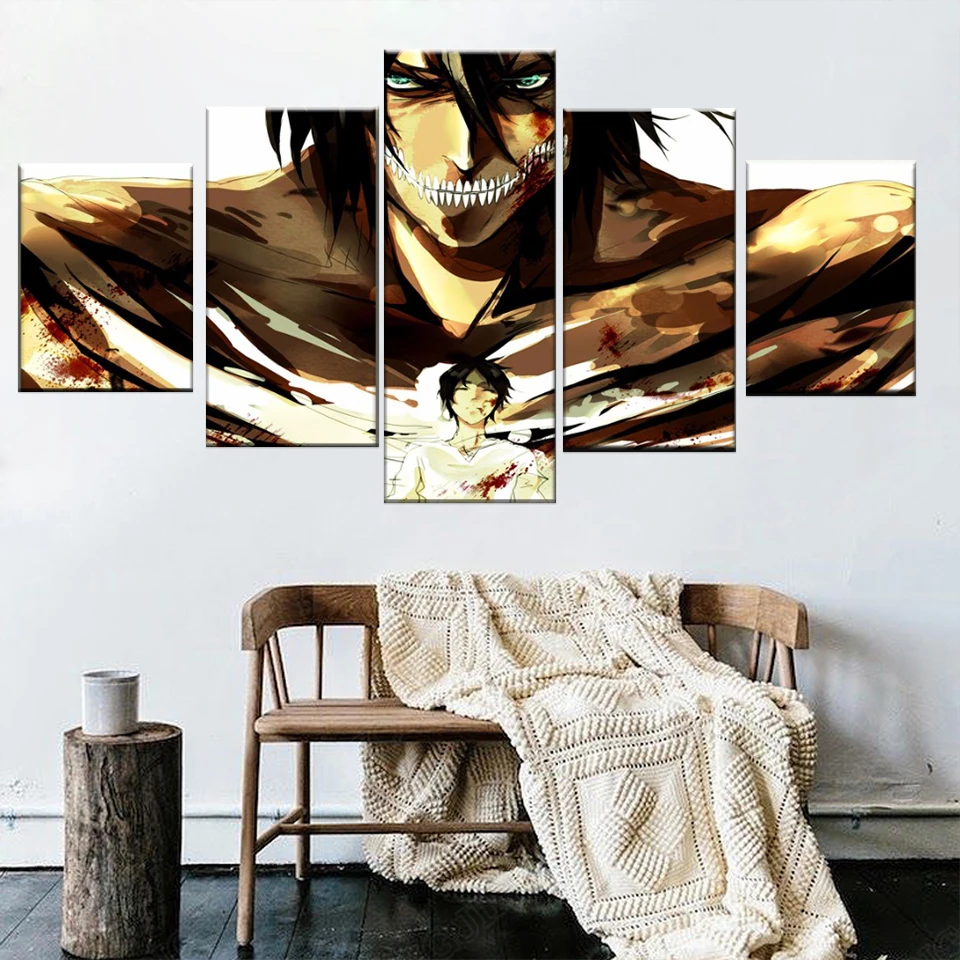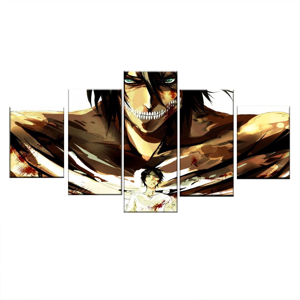 Настенная живопись на холсте, картина, печать, домашний декор, 5 шт., Постер атака на Титанов Эрена Yeager для гостиной, модульная структура