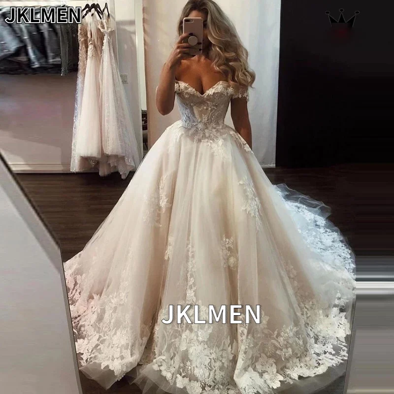 Кружевное бальное платье из тюля, свадебное платье с открытыми плечами, на шнуровке, на заказ, 2021