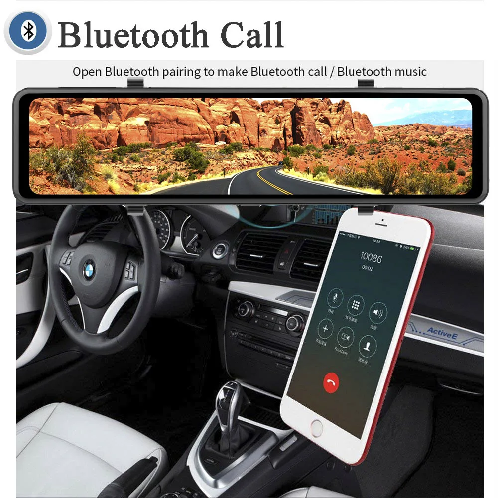 Поддерживает bluetooth hands-free, После сопряжения bluetooth между видеорегистратором и смартфоном, вы можете совершать и принимать звонки непосредственно с самого зеркального видеорегистратора со встроенным микрофоном и динамиком. Вы также можете воспроизводить музыку через Bluetooth.