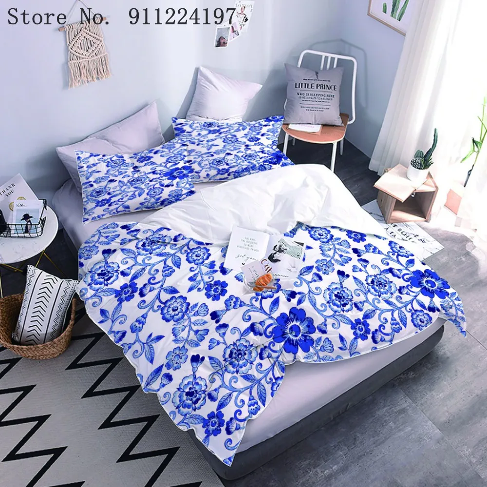 Принт в виде голубого цветка пододеяльник постельное белье с микрофиброй лист простой средней школы для мальчиков девочек Постельное белье 23 шт. один двойной комплект постельного белья набор 240x220cm