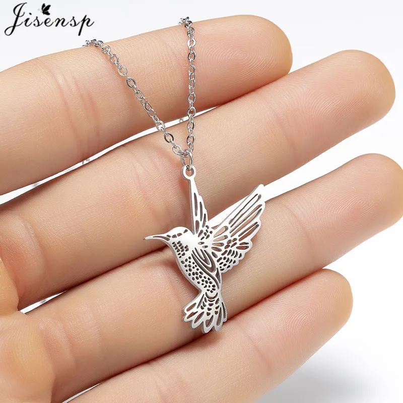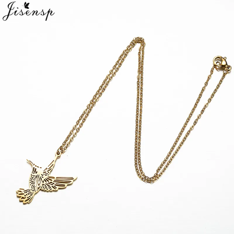 Ожерелье из нержавеющей стали с изображением Колибри, женское, богемное, с птицами оригмаи, подвесные ожерелья с животными, Золотое колье, 2021