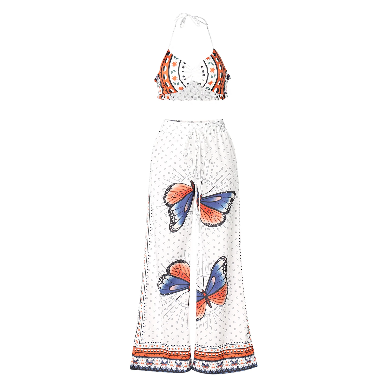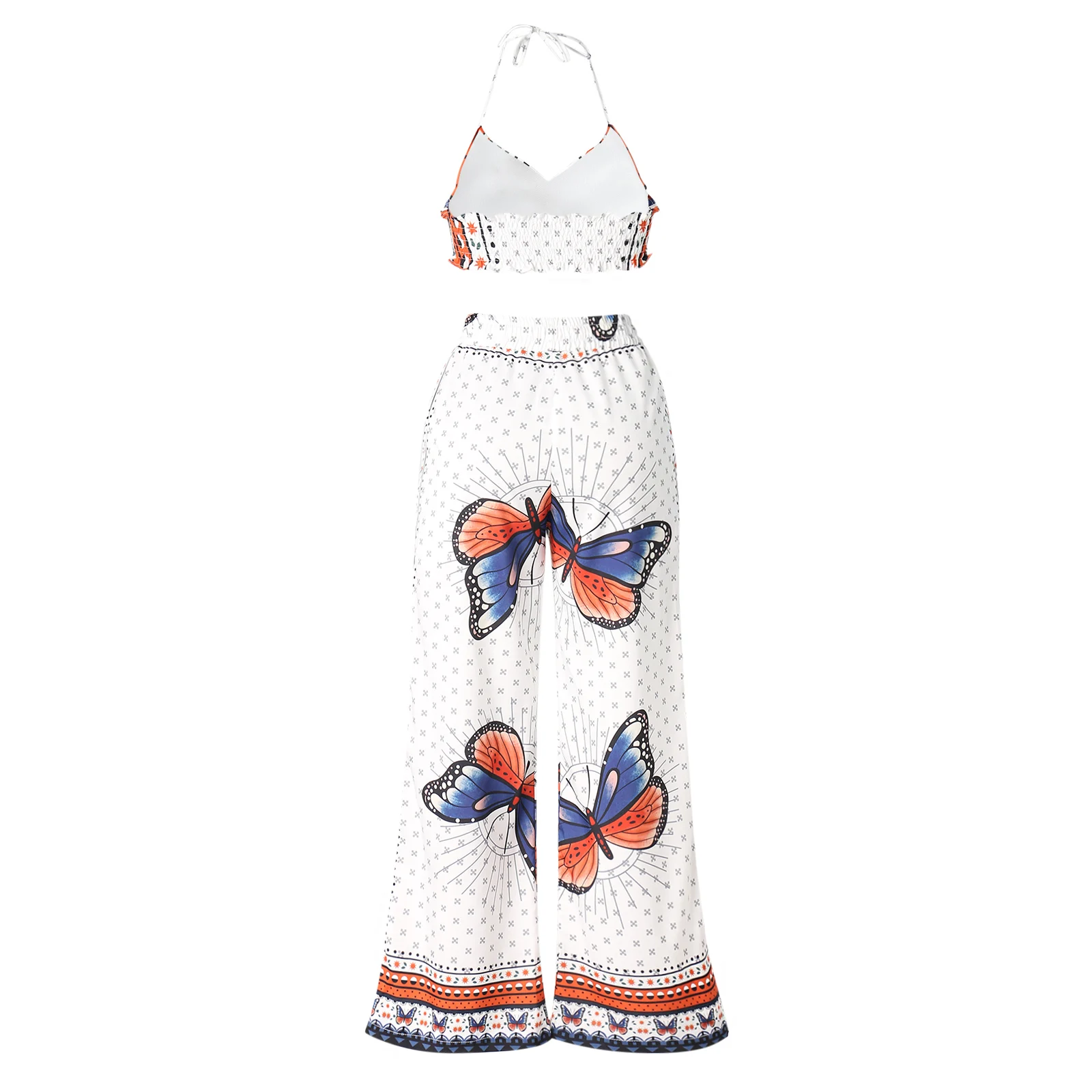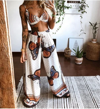 Женский Повседневный костюм из двух предметов, белый топ с принтом бабочки и длинные удобные штаны, Размеры S M L XL, 2021