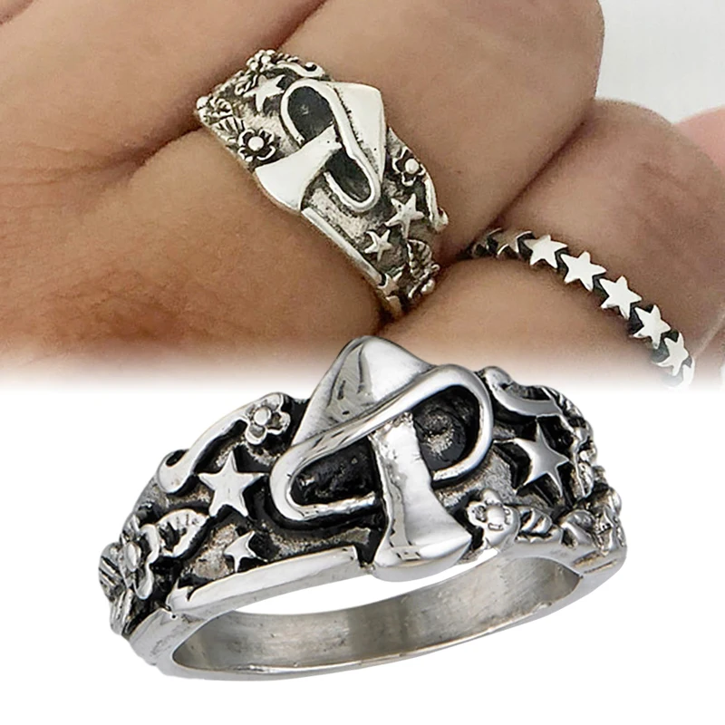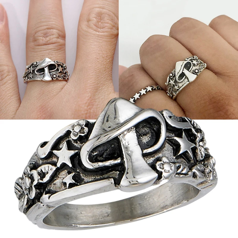 Массивное мужское кольцо в стиле панк, минималистичное ювелирное изделие в готическом винтажном стиле, печатка с грибом, звездой, цветком, хороший подарок для мужа