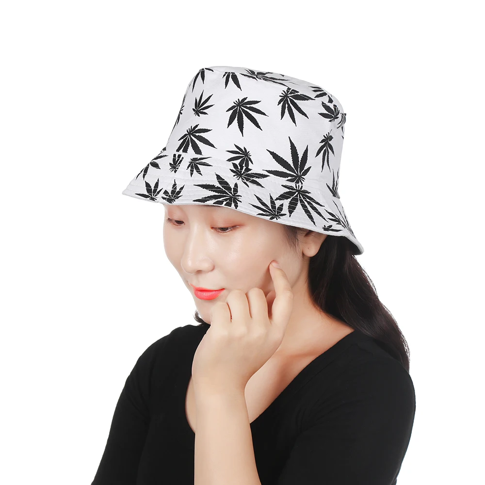 Шляпа рыболовная хлопковая в стиле хип-хоп с принтом кленовых листьев