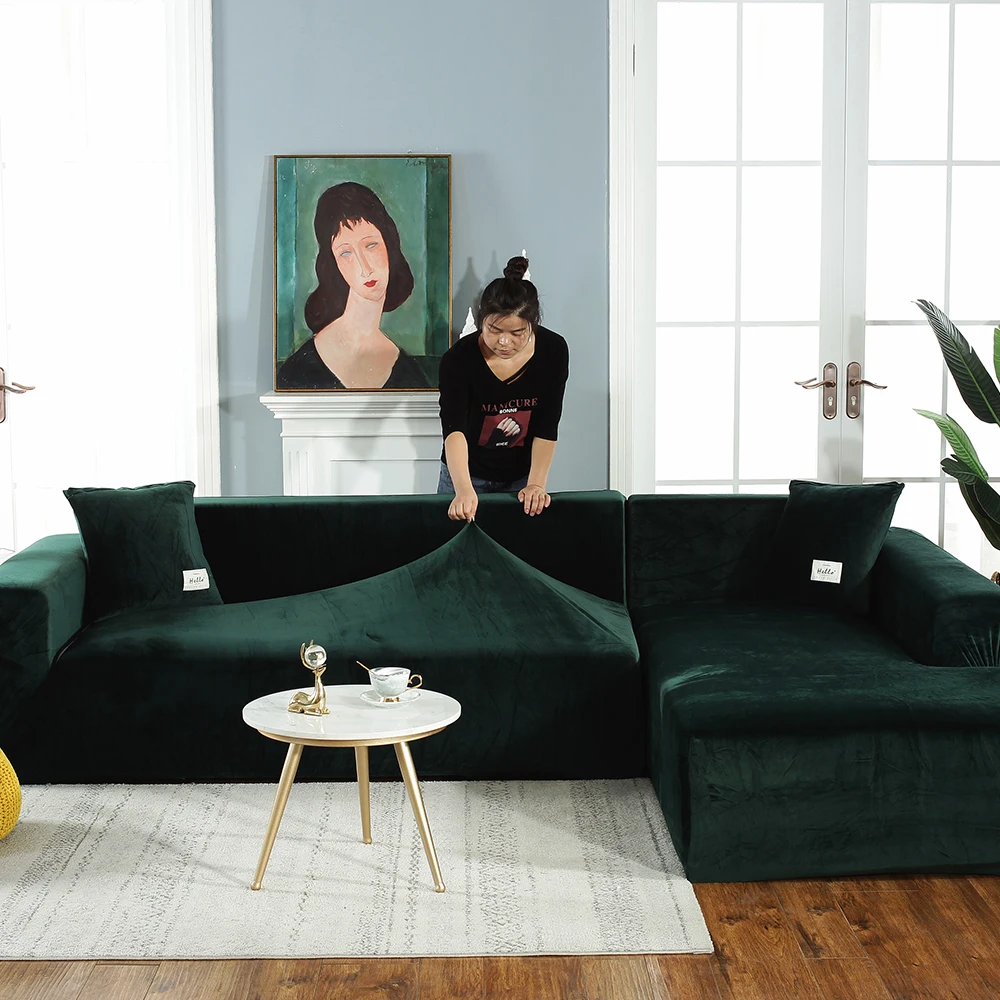 Бархатный плюшевый L-образный диван, эластичное покрытие для мебели...