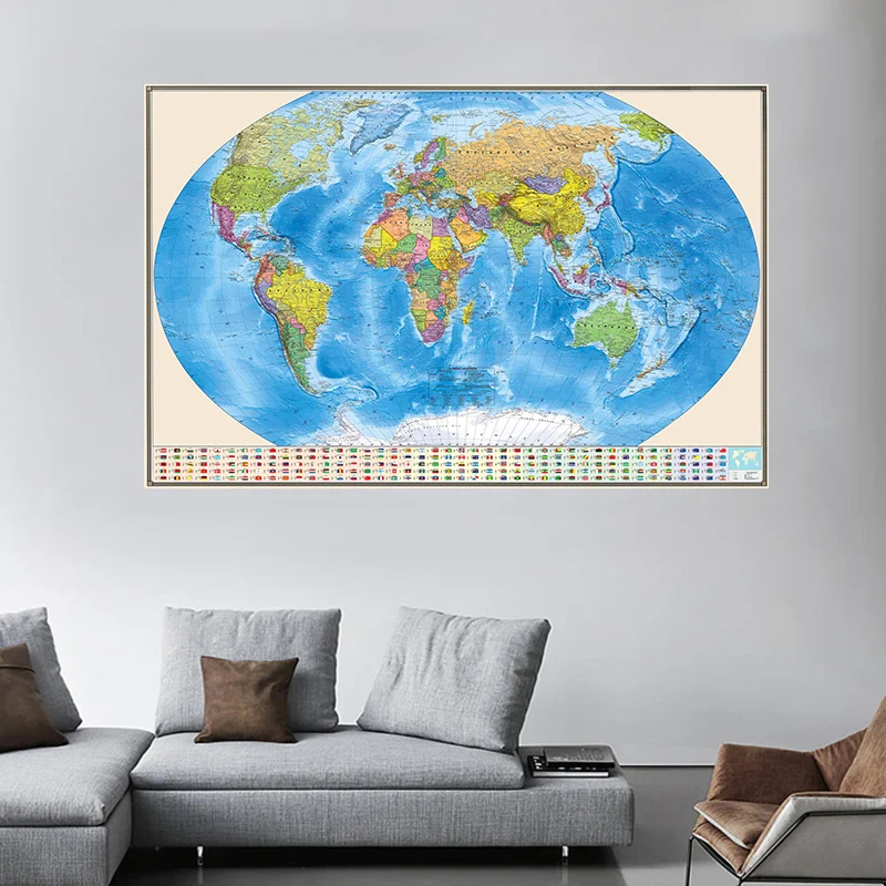 Российская политическая карта мира, винтажная Нетканая Картина на холсте, настенный плакат, гостиная, домашний декор, школьные принадлежности