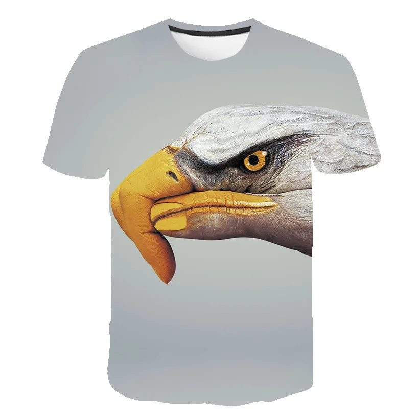 Новинка 2021, популярная мужская футболка с 3D-принтом орла и корот...