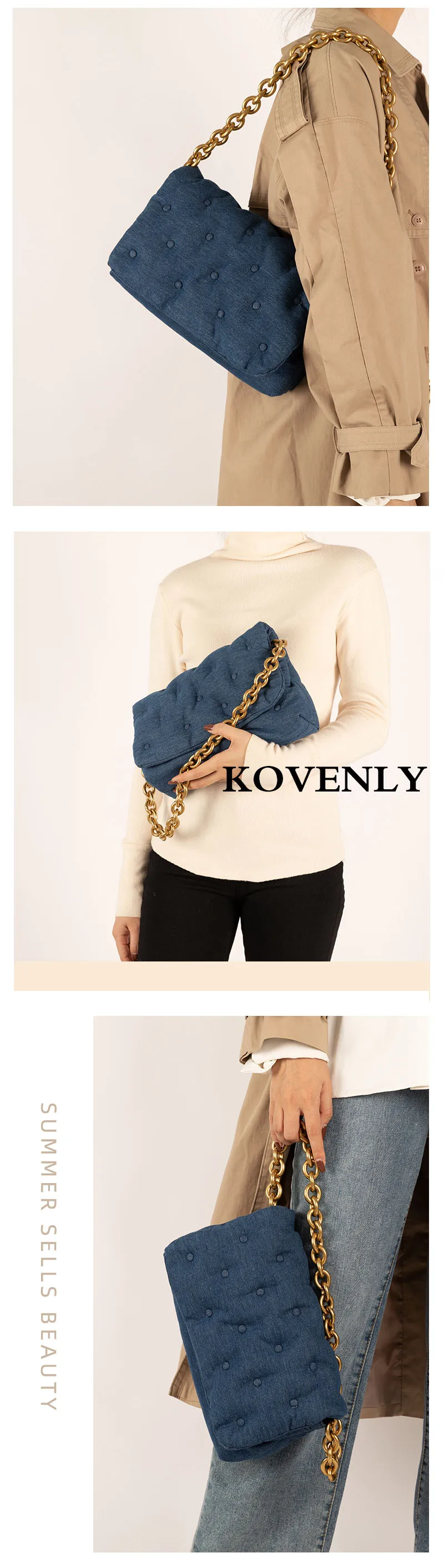 Женские сумки на плечо 2021, джинсовые качественные толстые кошельки и сумочки на плечо с металлической цепочкой, женские клатчи, дамские сумочки для подмышек