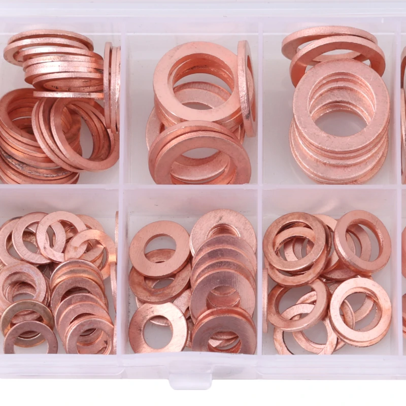 Медные шайбы 200 шт.коробка, плоское кольцо, пробка для отстойника, масляное уплотнение, набор в ассортименте, профессиональный комплект, медное кольцо, прокладка