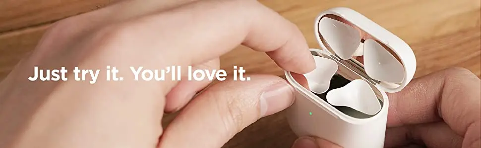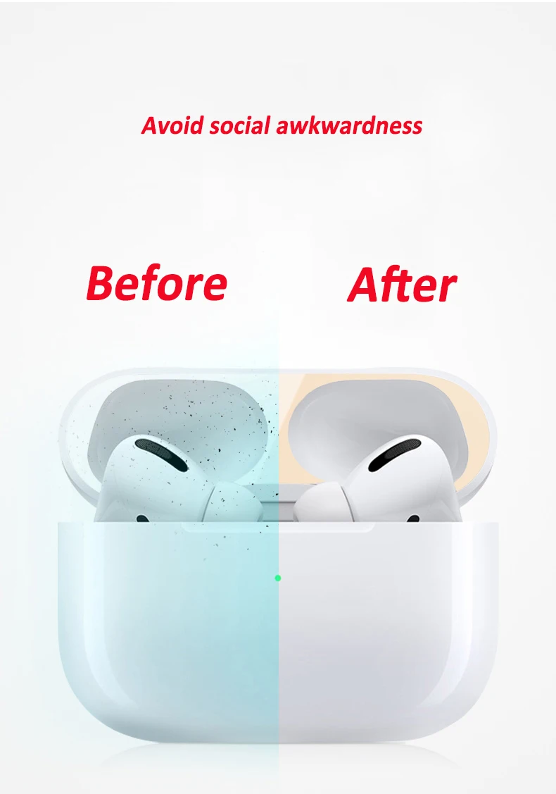 Заказал белые наклейки, но получил серебро. Не конец света, но они не подходят очень хорошо. Встаньте и не садитесь в воду. Когда я попробовал вынуть мои AirPods с наклейкой, вещь порвана и приклеила к моим AirPods.