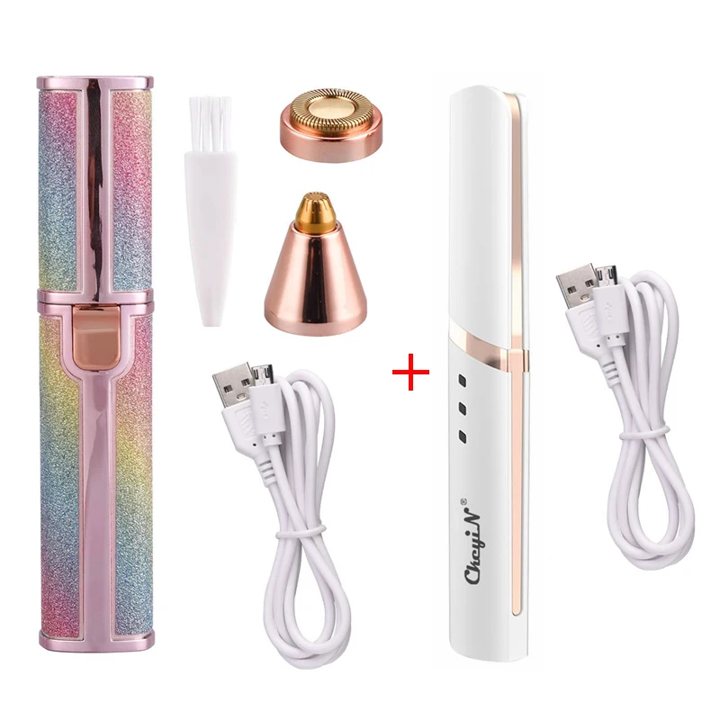 Электрический триммер для бровей Ckeyin 2 в 1, перезаряжаемый мини-эпилятор, бритва + щипцы для завивки ресниц с подогревом, инструмент для макияжа 5
