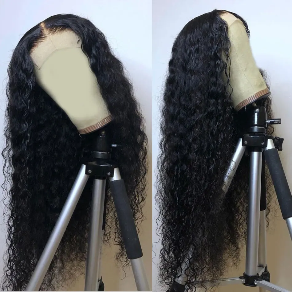 Бразильские волнистые кружевные передние парики, предварительно выщипанные прозрачные 13x 4 кружевные передние парики Remy, кудрявые человеческие волосы, кружевные парики, водная волна, парик