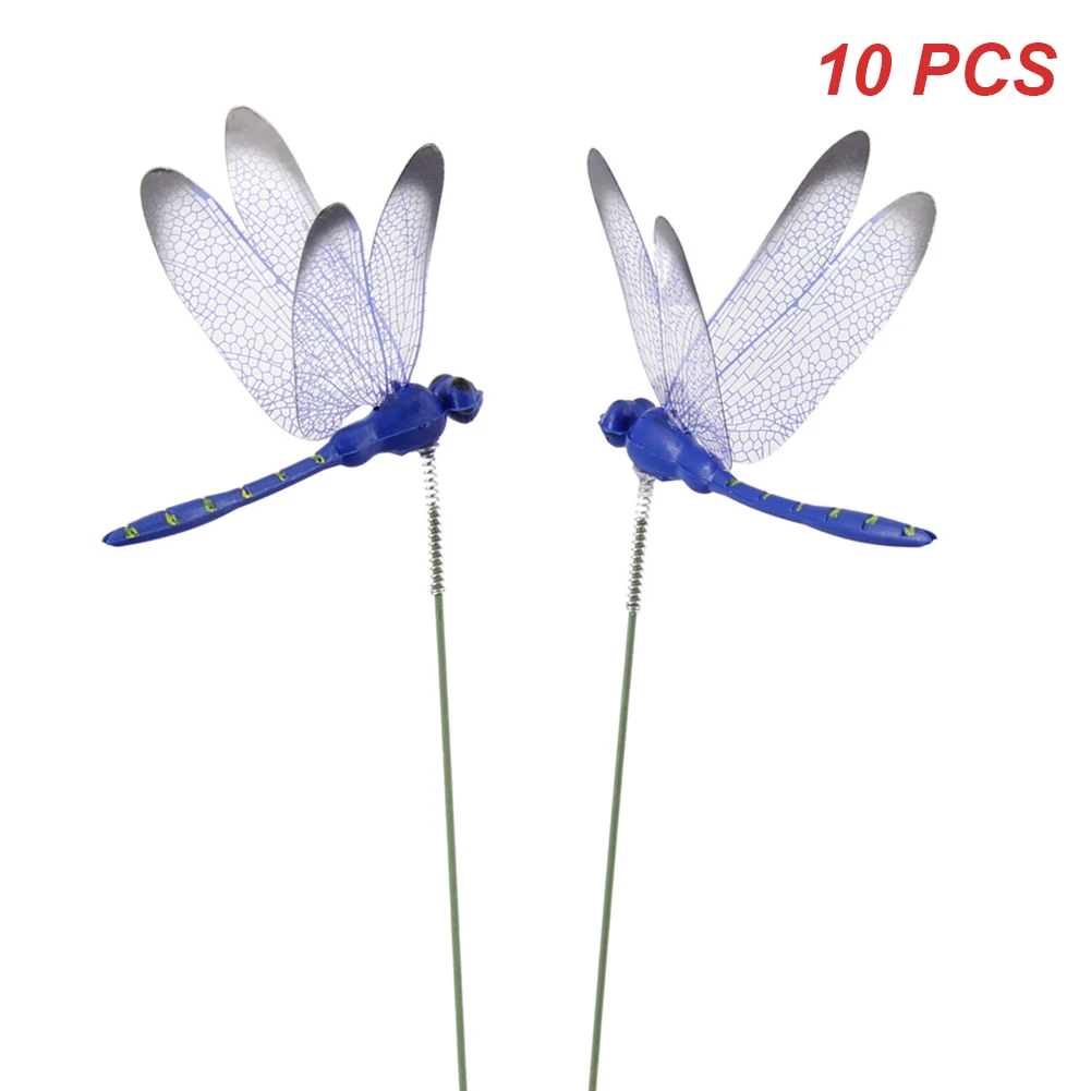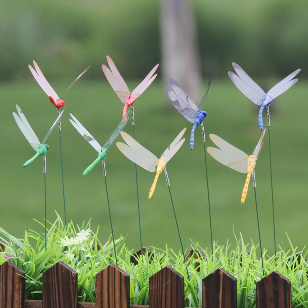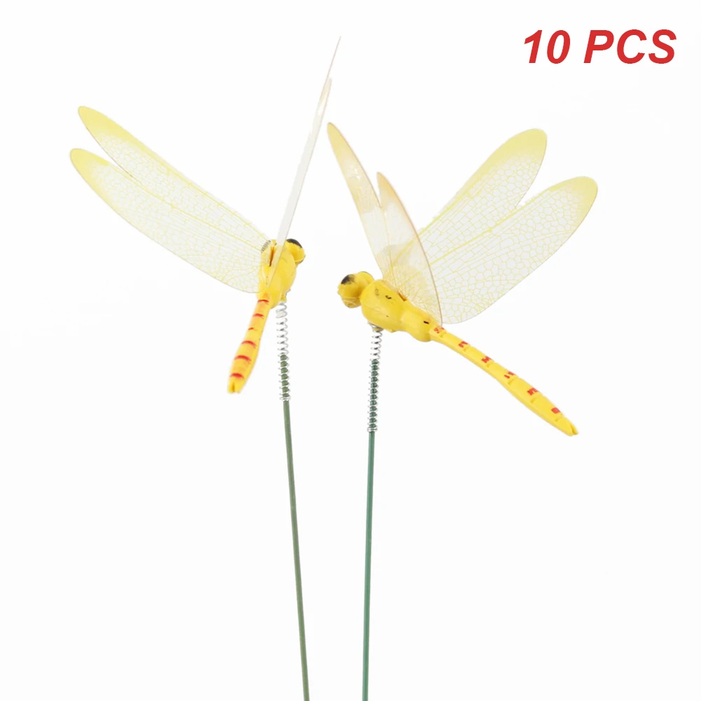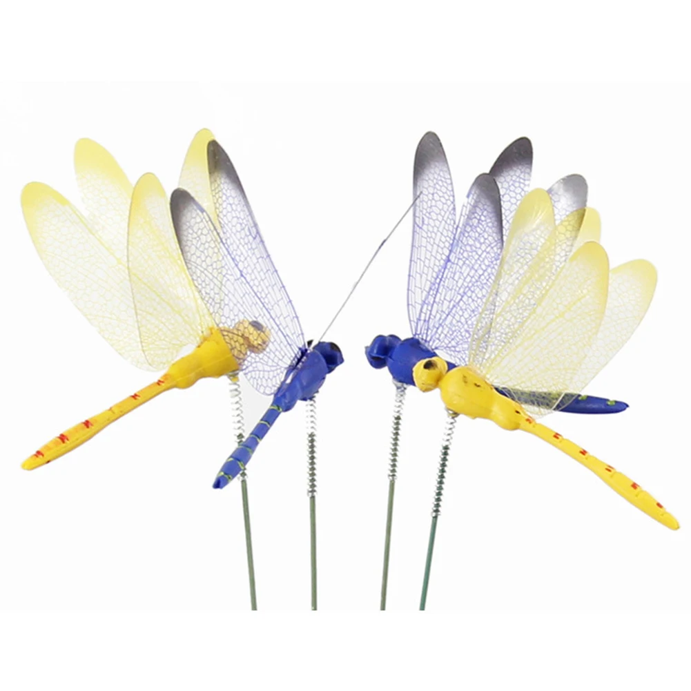 10 шт.лот искусственные стрекозы бабочки садовые украшения уличная 3D имитация стрекозы ставки двор растения газон Декор палка