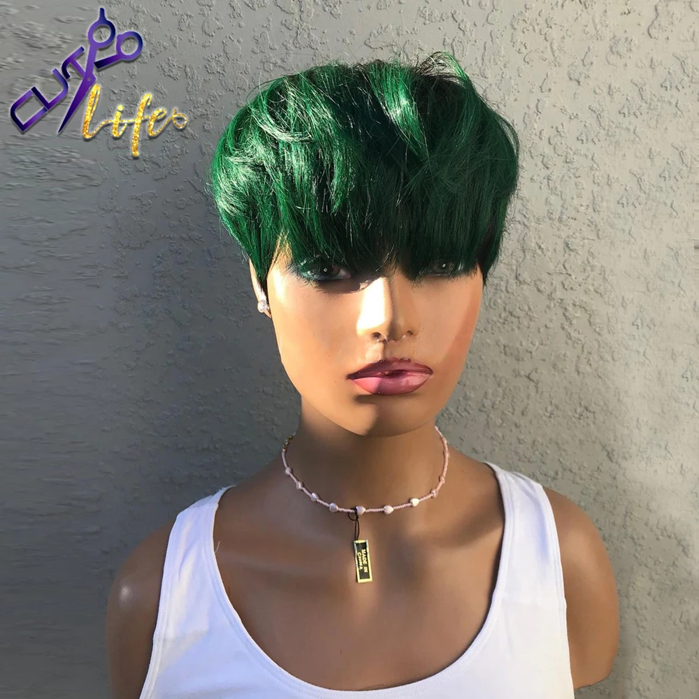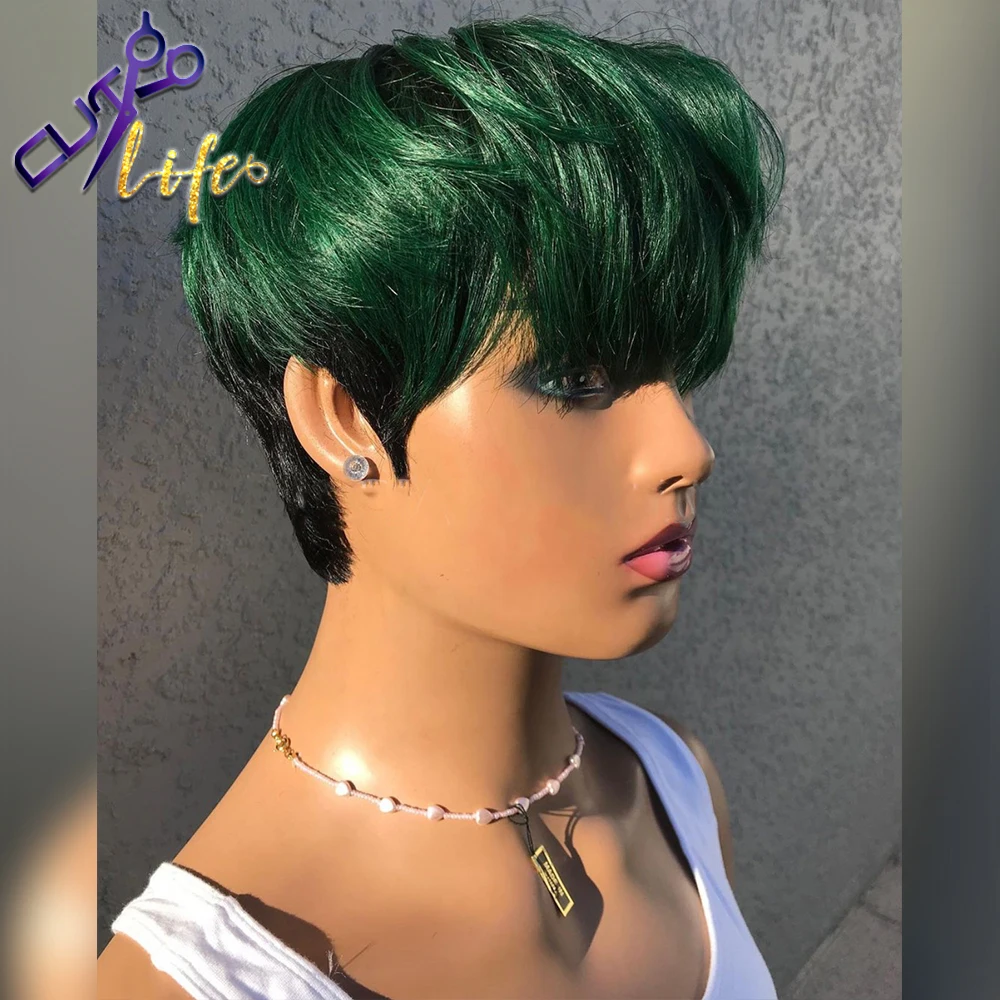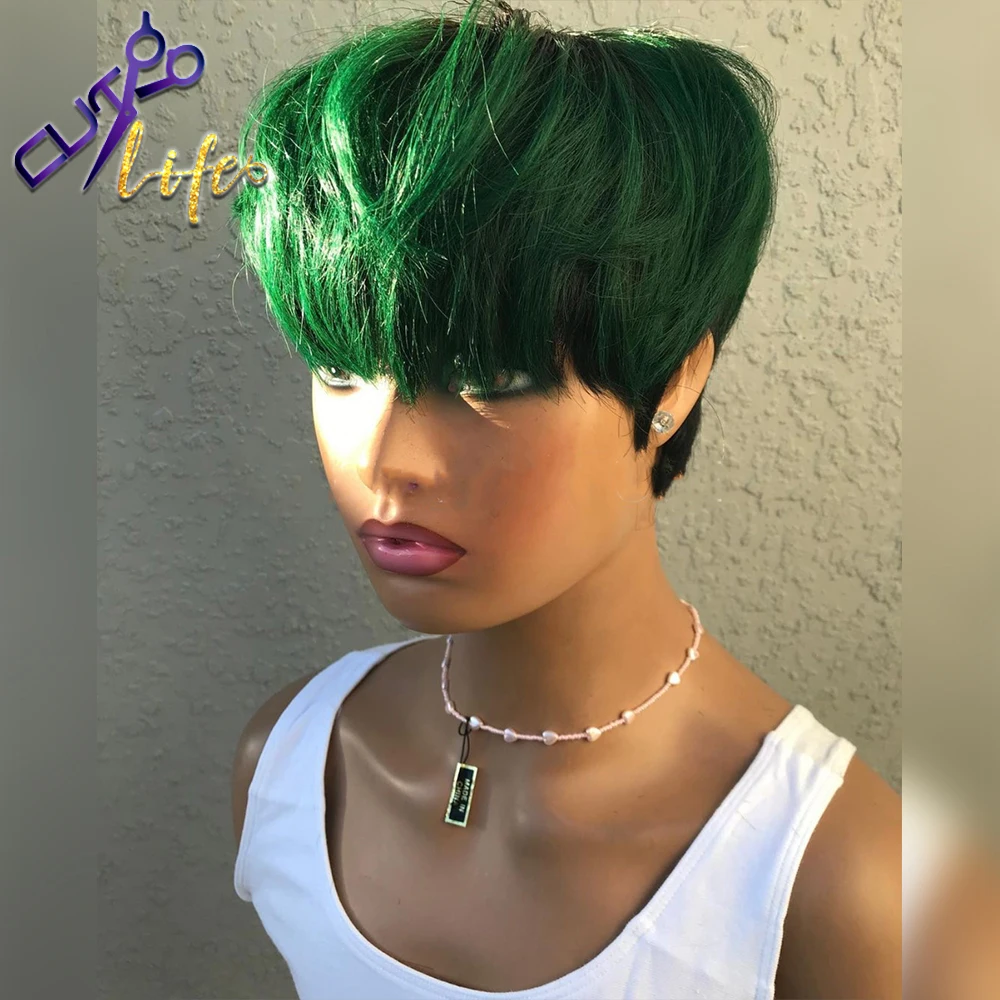 Парик из 100% натуральных волос Green Pixie, короткий, прямой, без клея, бразильский, для чернокожих женщин