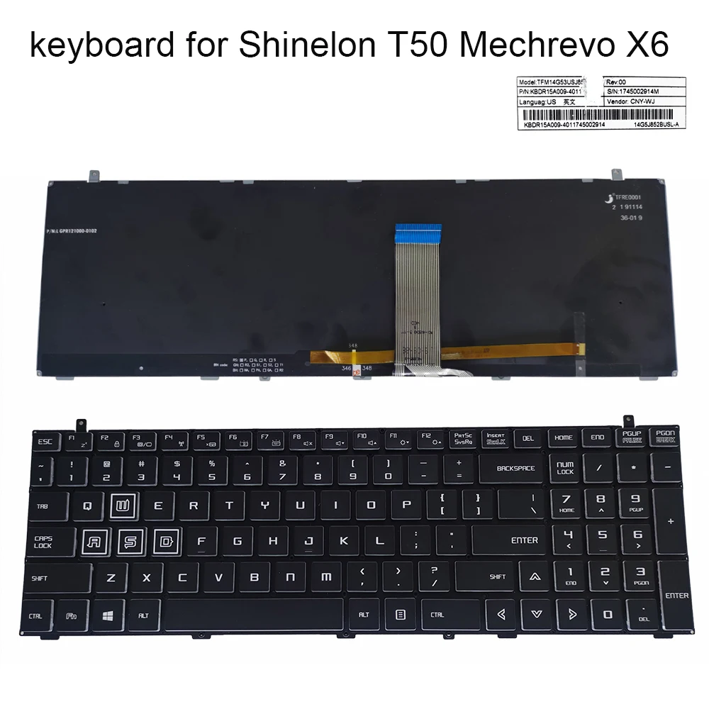 Латинской английскую клавиатуру обратно светильник для Shinelon T50 Mechrevo MR X6 X6S X6M X6E ноутбуки Подсветка клавиатуры 002-12A36LHA13 14G5J852BUSL