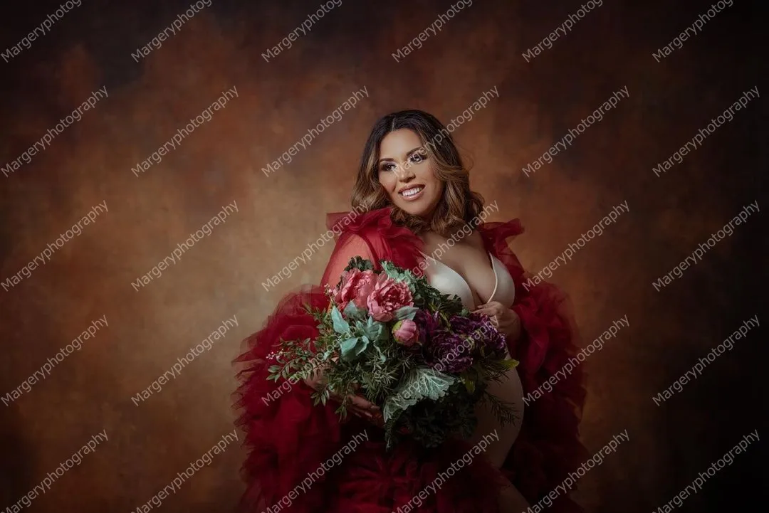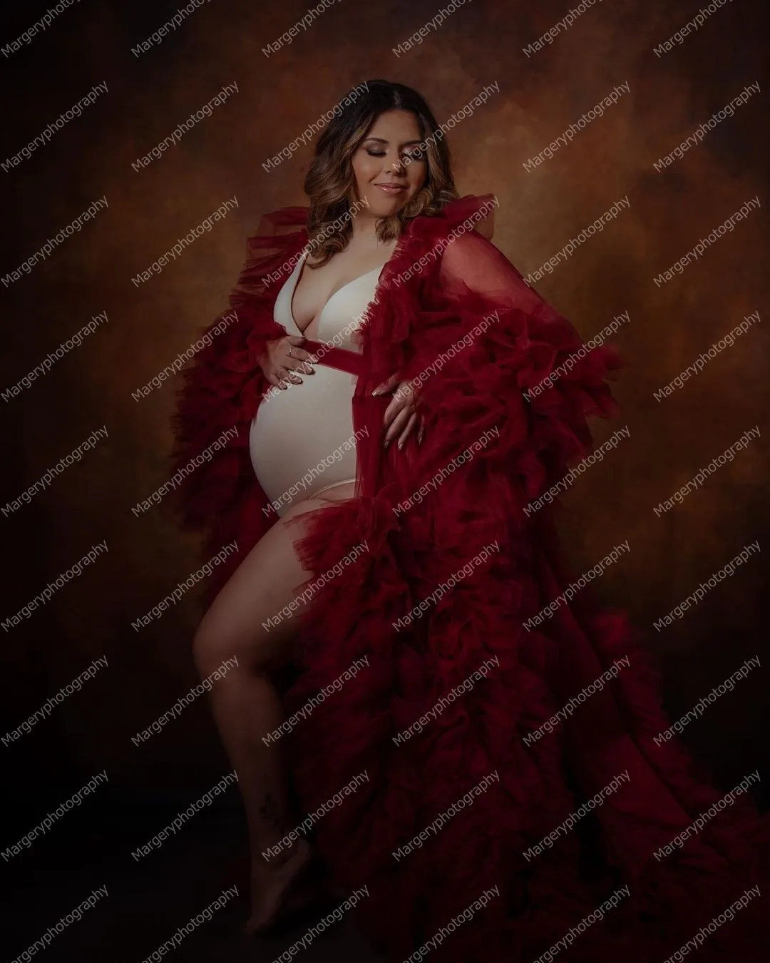 Классические красные тюлевые платья для беременных халаты с поясом очень Пышное с оборками многослойное Джорджо с поездом одежда с длинным рукавом размера плюс мягкие банные халаты