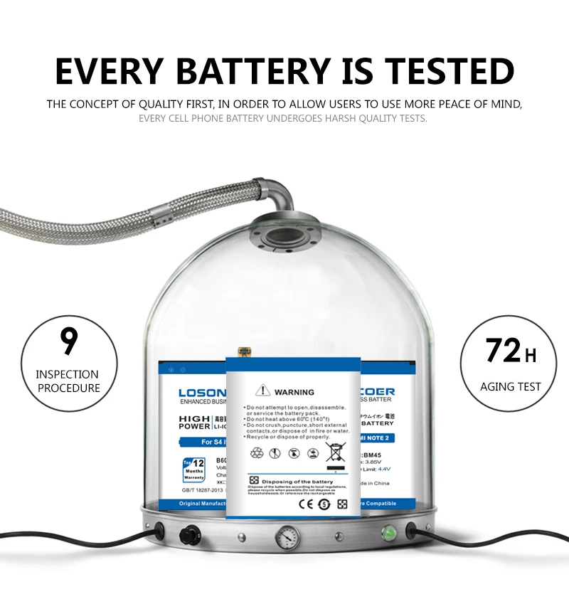 Профессиональное тестирование всехLOSONCOER Батарея прошла строгую проверку качества перед отправкой: 100% новый и O цикл, без эффекта памяти, 72 часа испытания на старение, высокой температуры статики и активировать внутренний химический элемент клетки, обеспечивают стабильность зарядки и разрядки. Так что вам не нужно активировать, заряжать или использовать его немедленно.