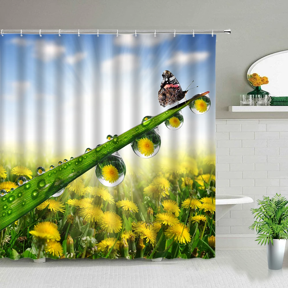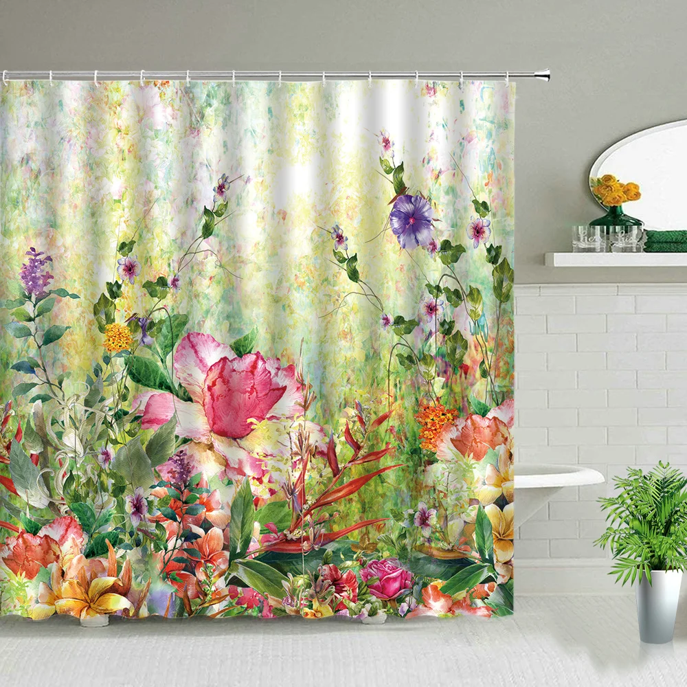 Весенний пейзаж, цветы, растения, набор занавесок для ванной комнат...