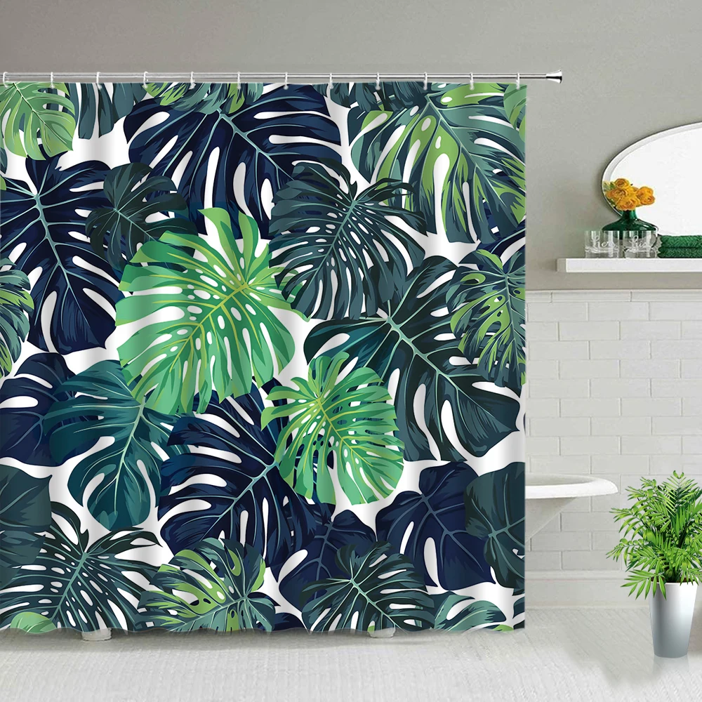Занавеска для душа, из полиэстера, с тропическими пальмовыми листьями