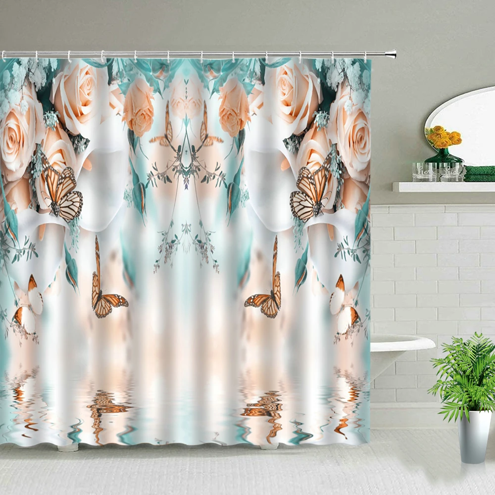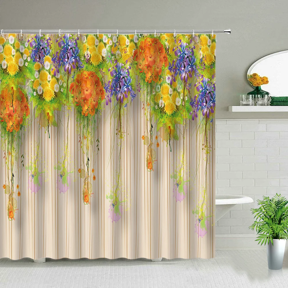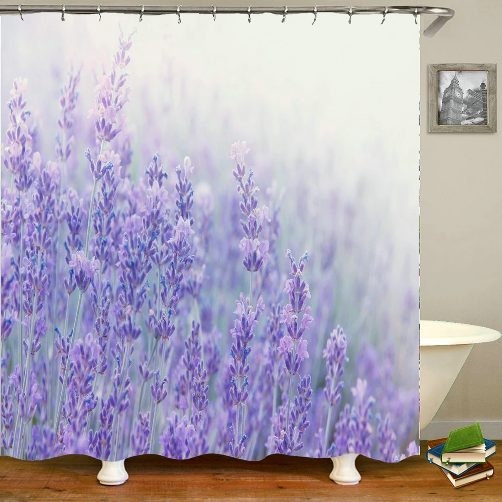 Водонепроницаемая занавеска для душа, тканевый Шторка для ванной комнаты с изображением цветов, растений, Листьев, лаванды, кактуса, одуванчика, с крючками