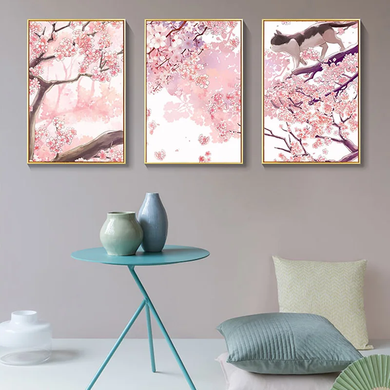 Настенные художественные принты, Постер в японском стиле, цветок вишни, пейзаж, холст, живопись, кошка, розовые постеры и принты для гостиной