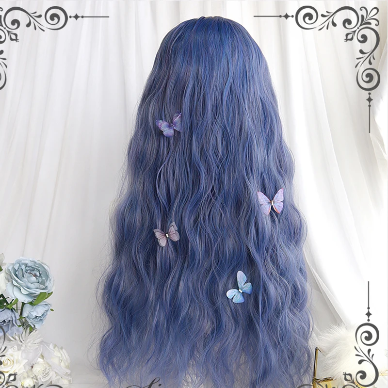 2021 серая фиолетовая синяя парик Лолиты в стиле Харадзюку Волшебная челка для косплея вьющиеся 65 см длинные милые аксессуары для волос из синтетики с бахромой для взрослых девочек