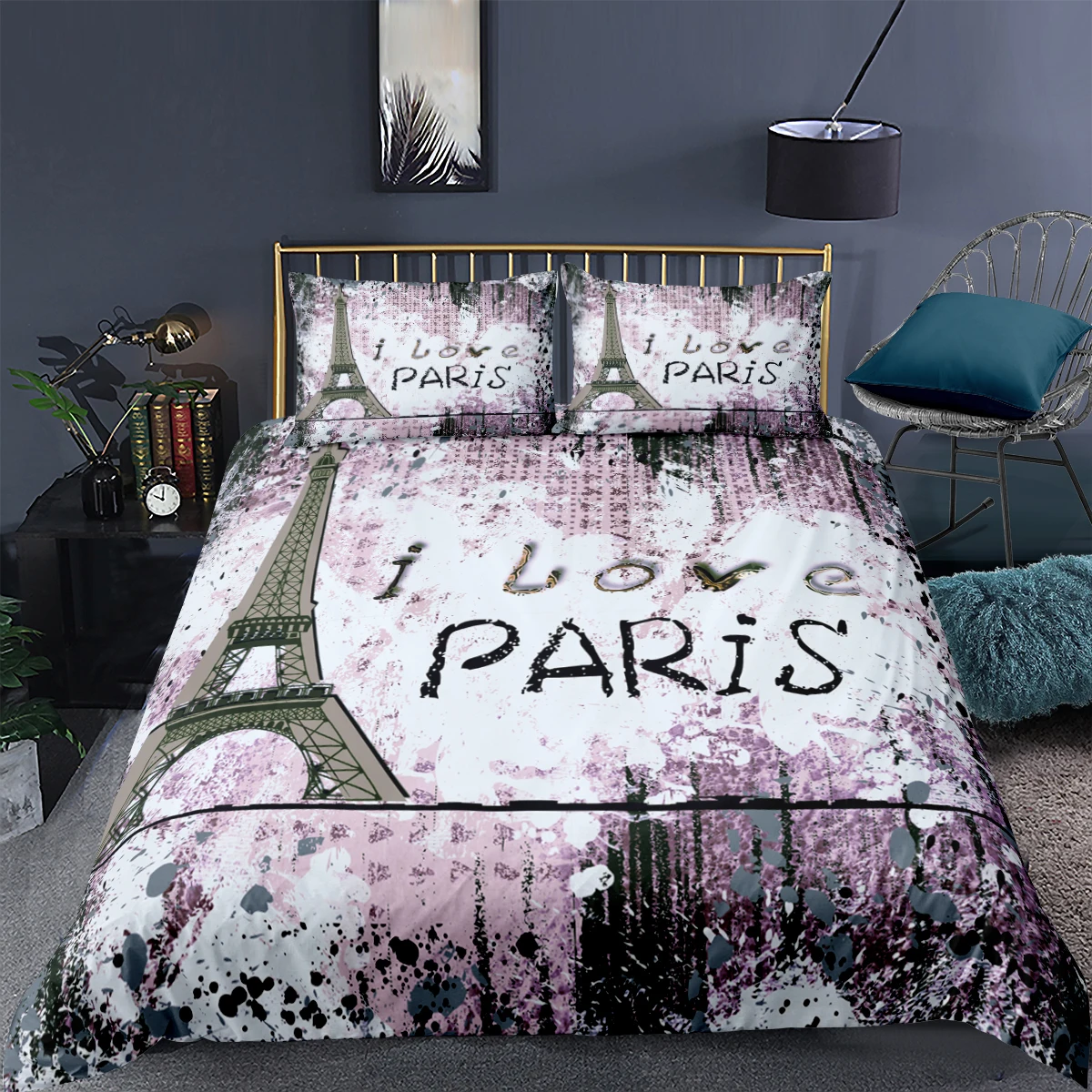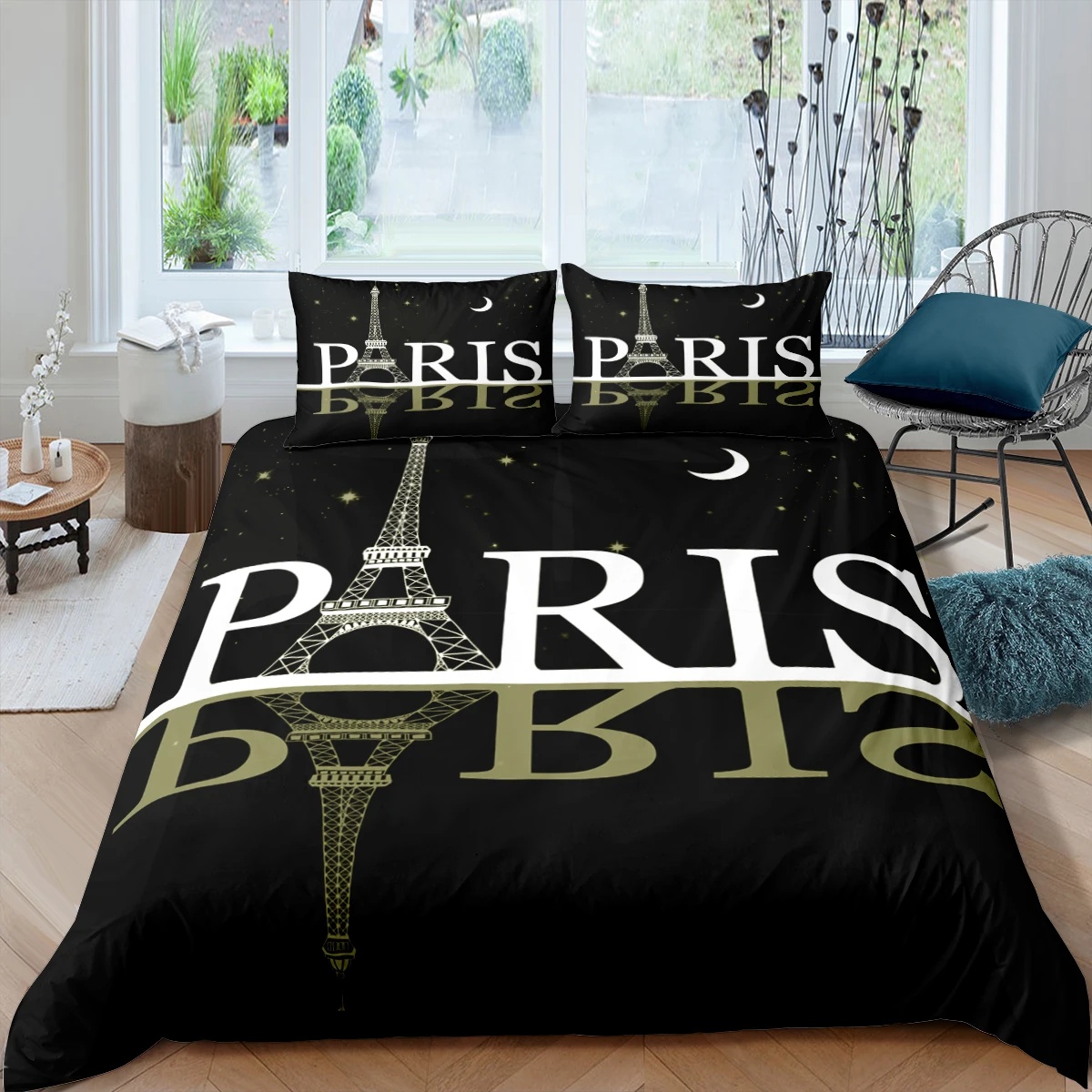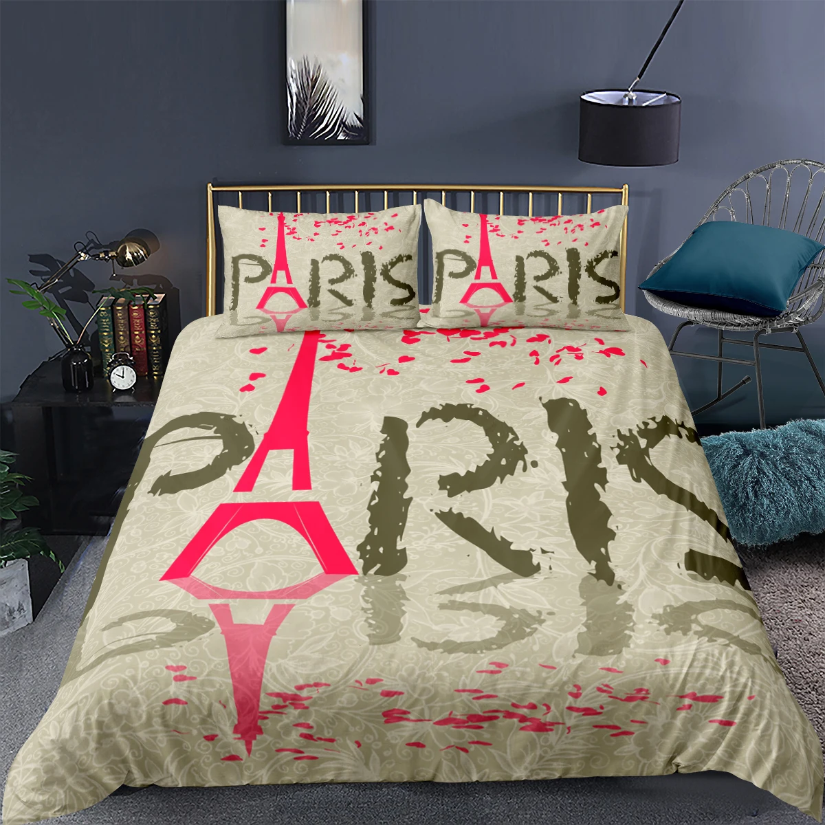 Модный 3d пододеяльник наволочка с рисунком Парижской башни роскошный удобный комплект постельного белья одинарныйдвойнойКоролевский