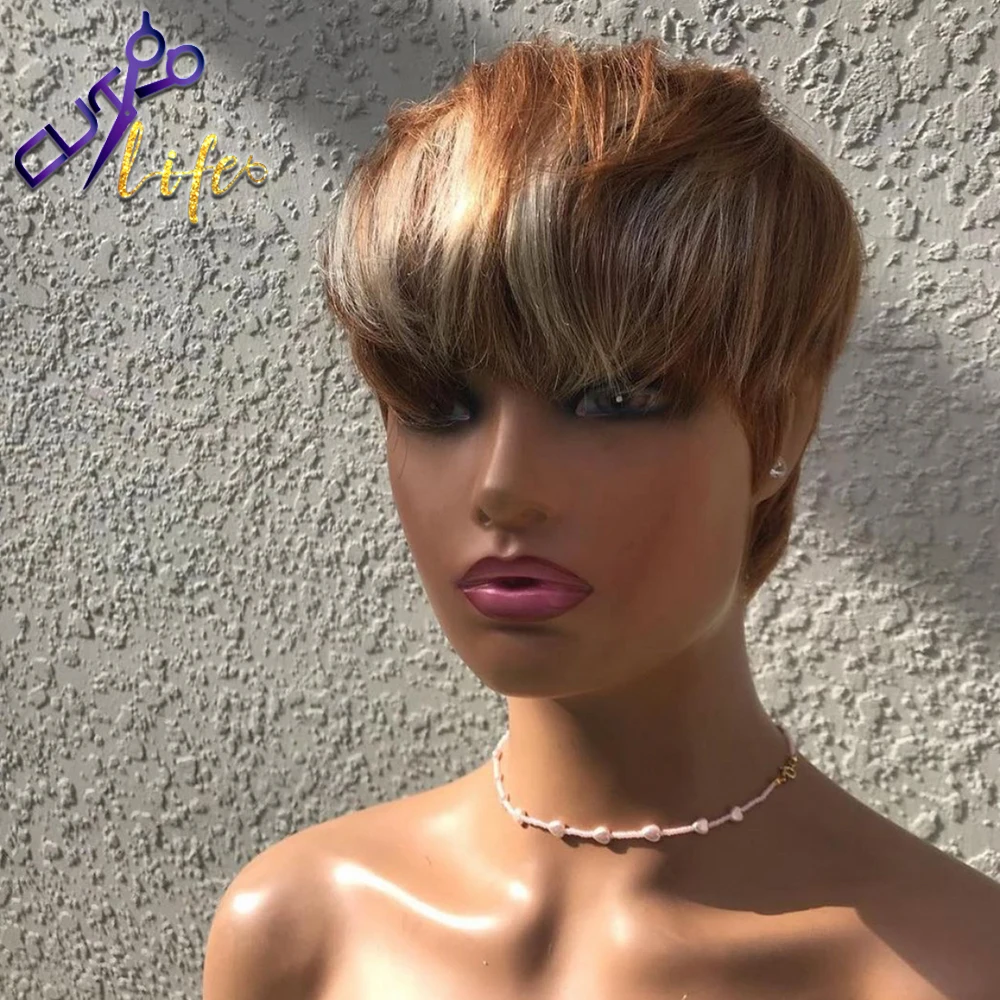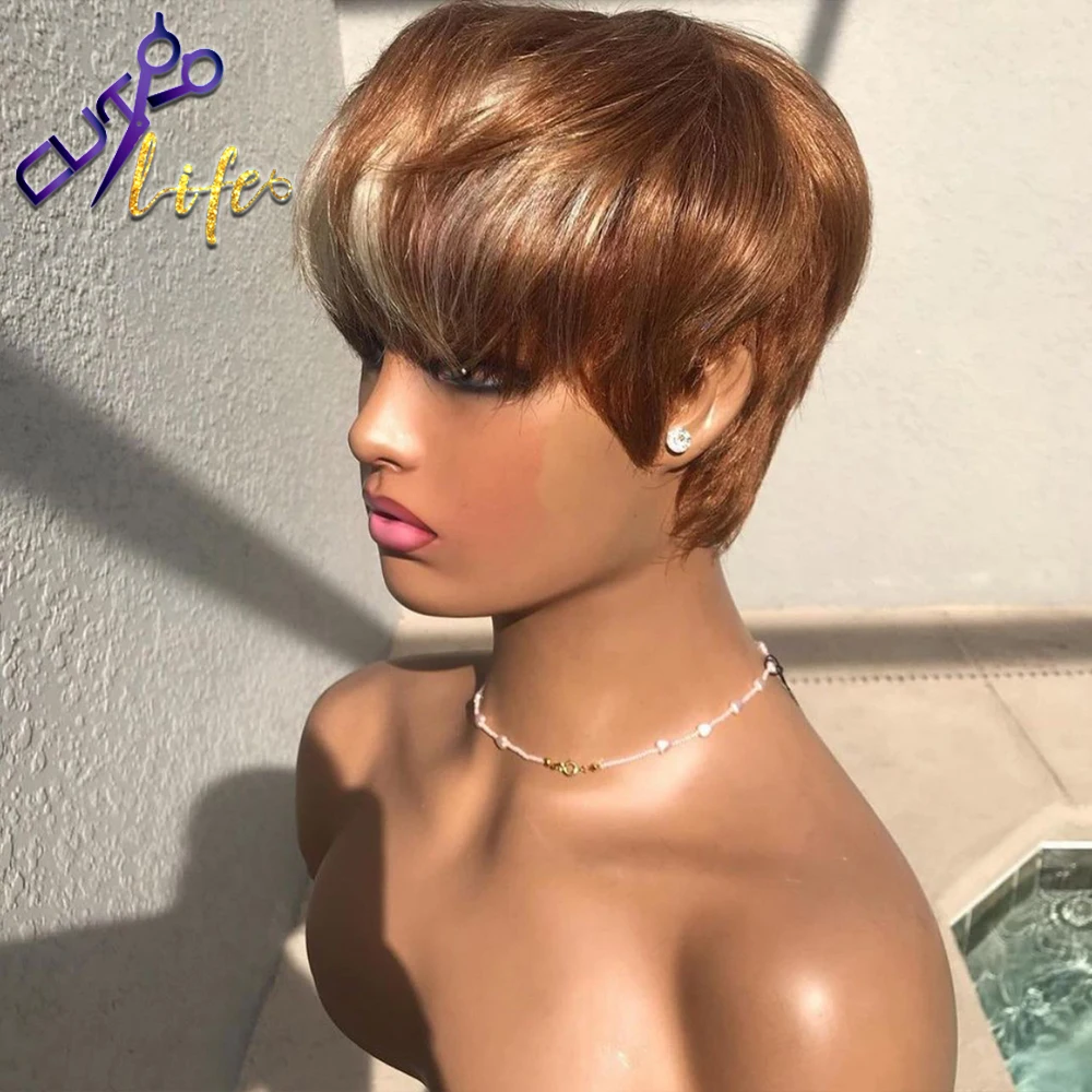 Парик Омбре из человеческих волос с коротким вырезом, волнистые волосы фея, парики без шнуровки с челкой, индийские волосы без повреждения кутикулы, парик для чернокожих женщин с полной машинкой