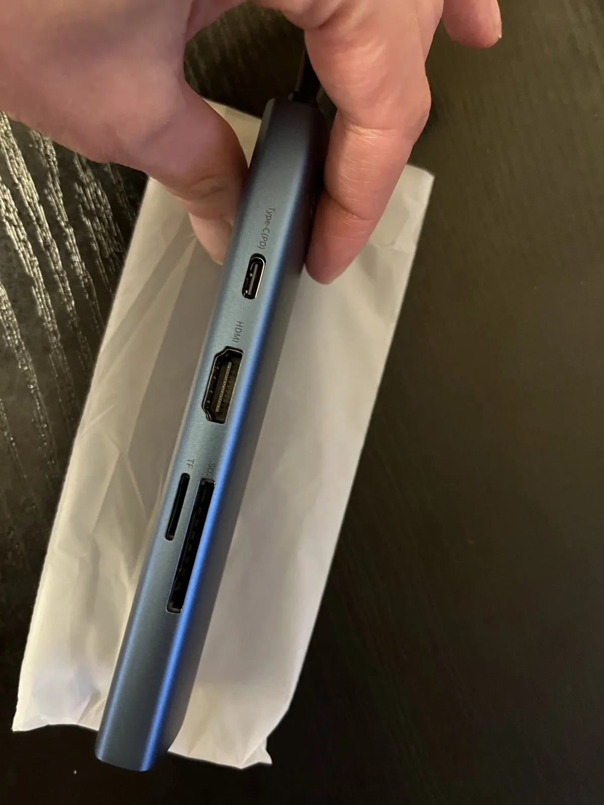 Отличный внешний вид и качество сборки! Работает сквозная зарядка по usb-c, стандартные usb порты, sd-ридер. Остальное пока не тестил. Немного греется, не критично.