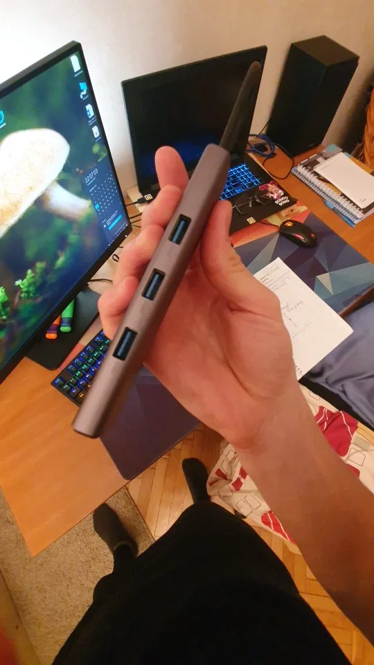 Нигде не было информации подойдёт ли данный хаб для ASUS zenbook ux325. Даже боялся покупать, но все работает отлично! Немного греется при зарядке, но не критично. Цвет отлично сочетается с ноутбуком. Доставка до почтомата в Мосву за 2 недели, иди даже быстрее. Думал, что будет поменьше конечно )))