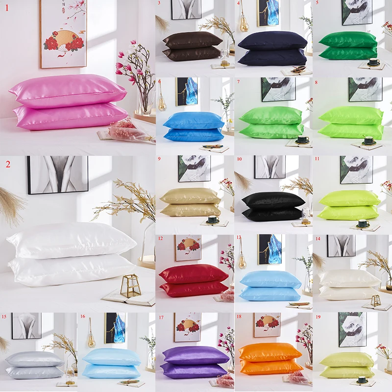 Эмуляция шелка 1 шт. атласная Подушка Чехол однотонная стандартная ...