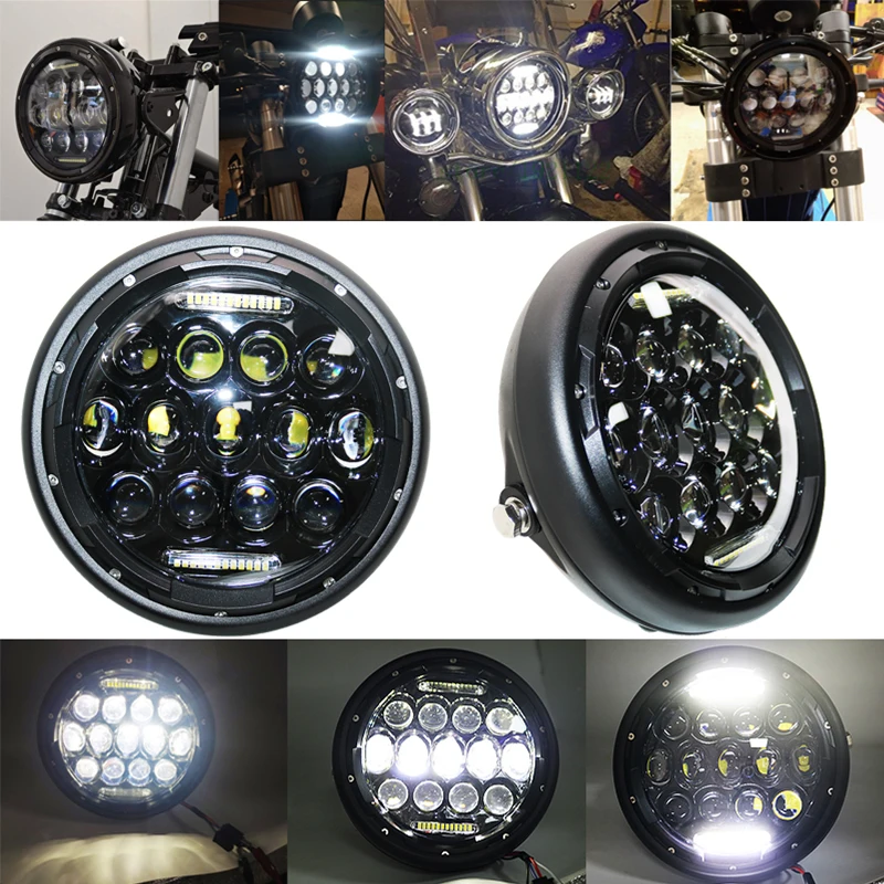 Светодиодная фара для мотоцикла Harley Honda Yamaha Cafe Racer Chopper, 7,5 дюйма